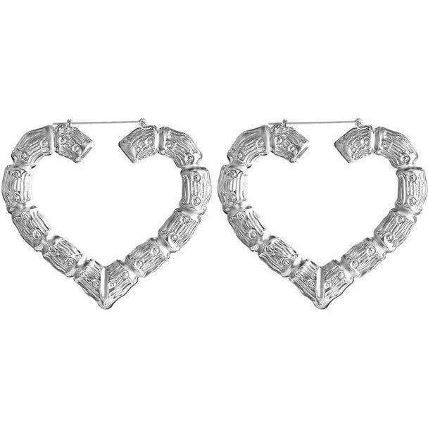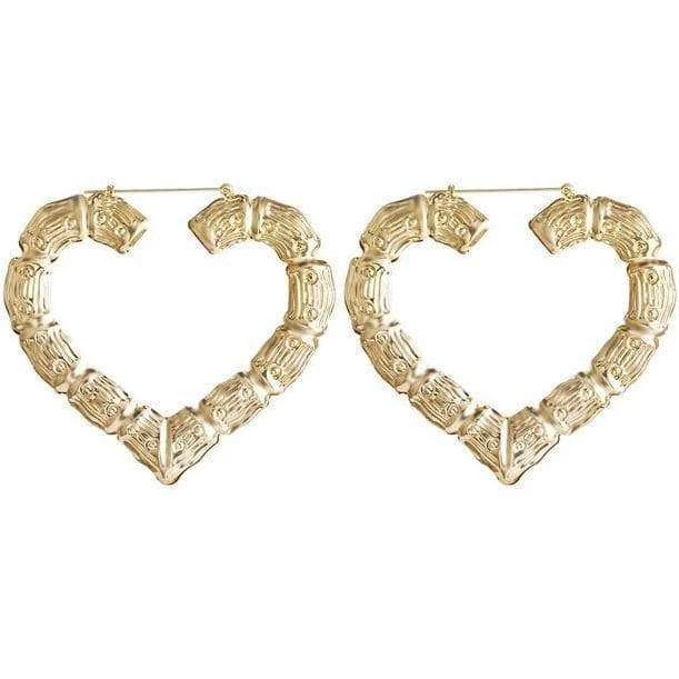 Gold or silver coloured, hollow bamboo-style heart hoop earrings.