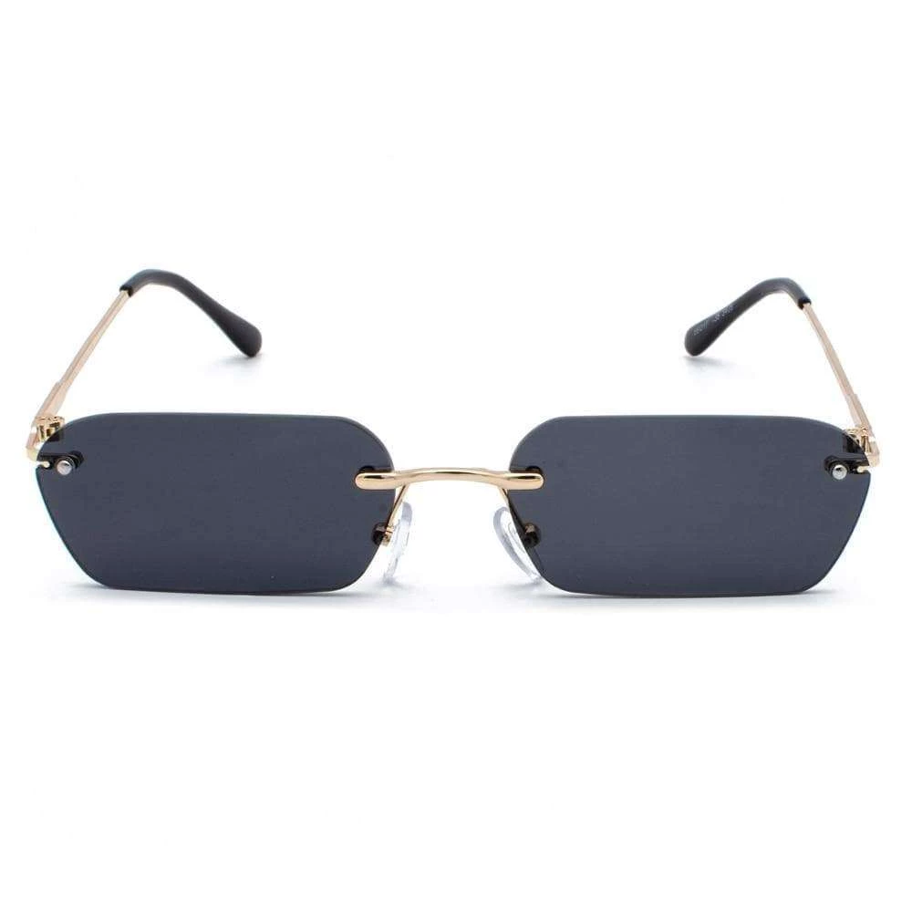 Rimless narrow rectangular sunglasses.