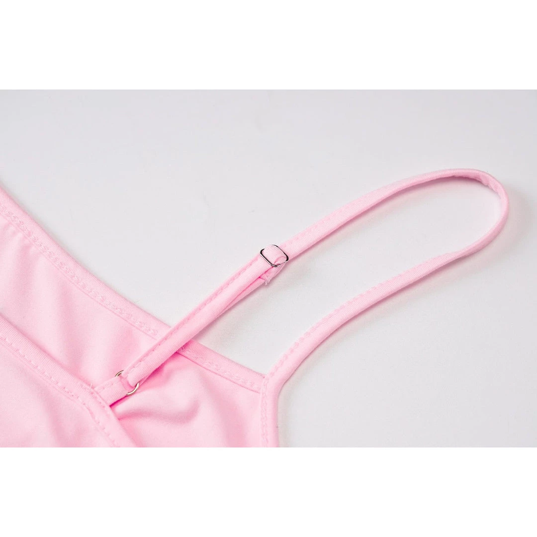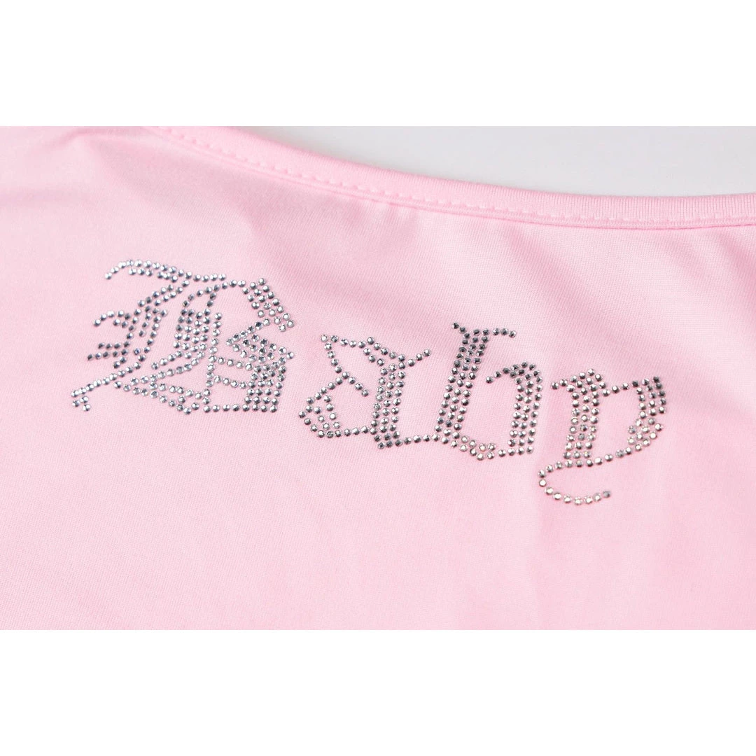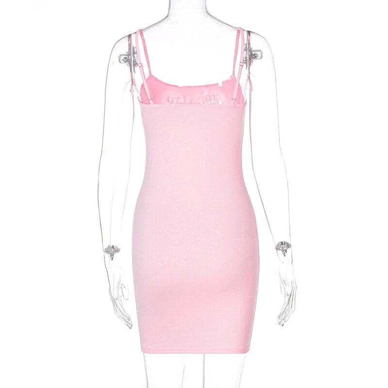 Baby pink mini cami dress with a silver ‘Baby’ gothic font rhinestone design.