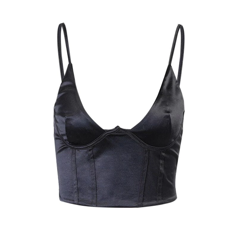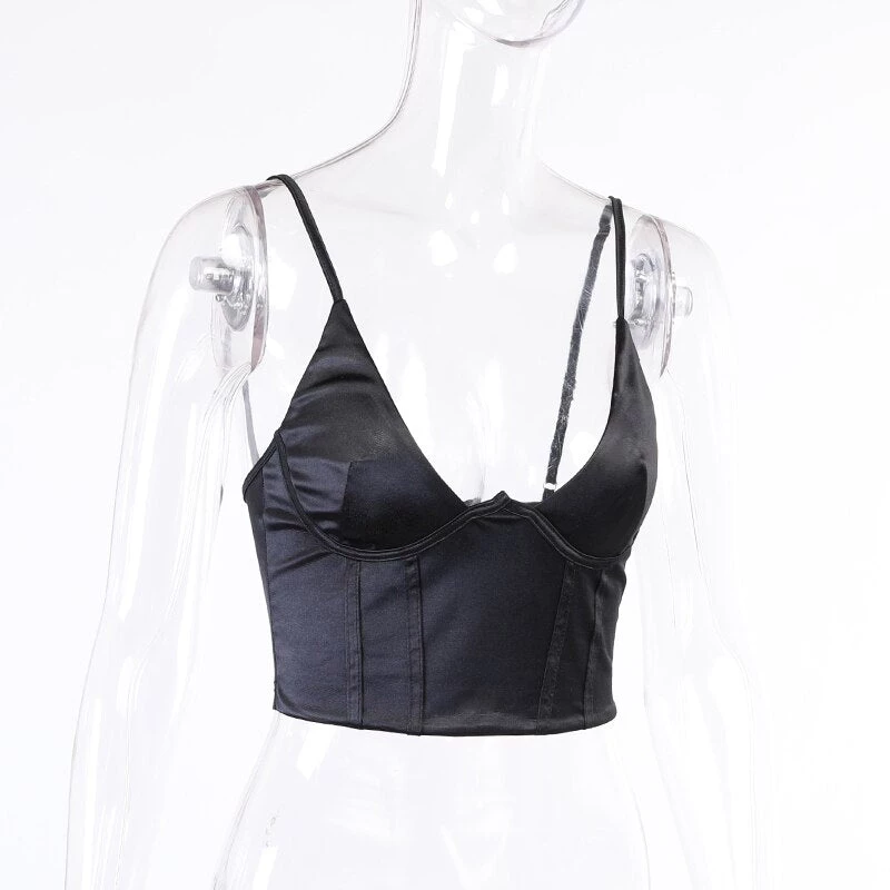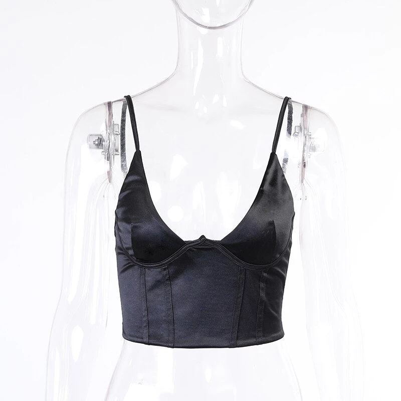 Low front satin cami crop top.
