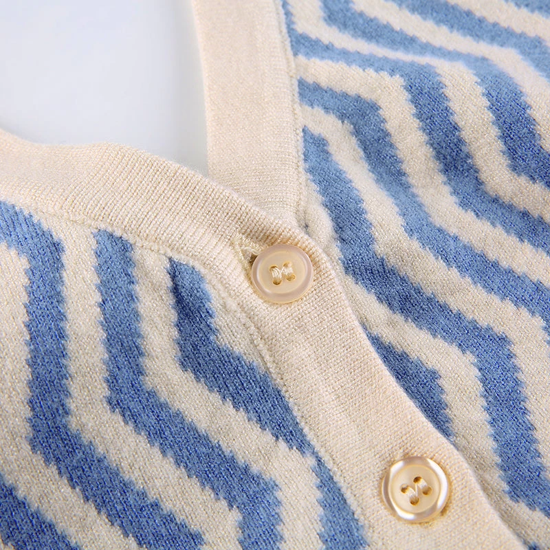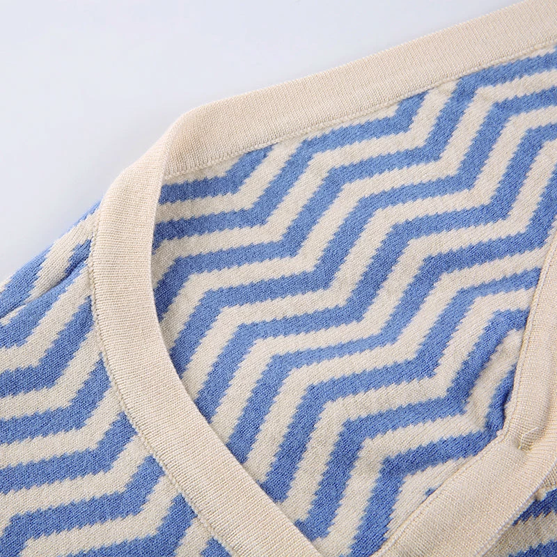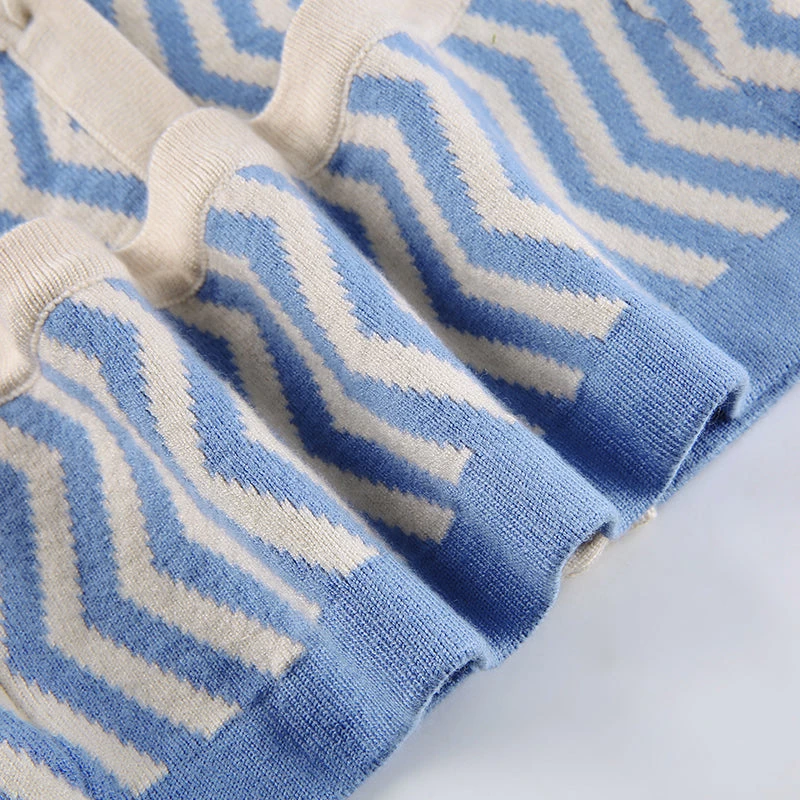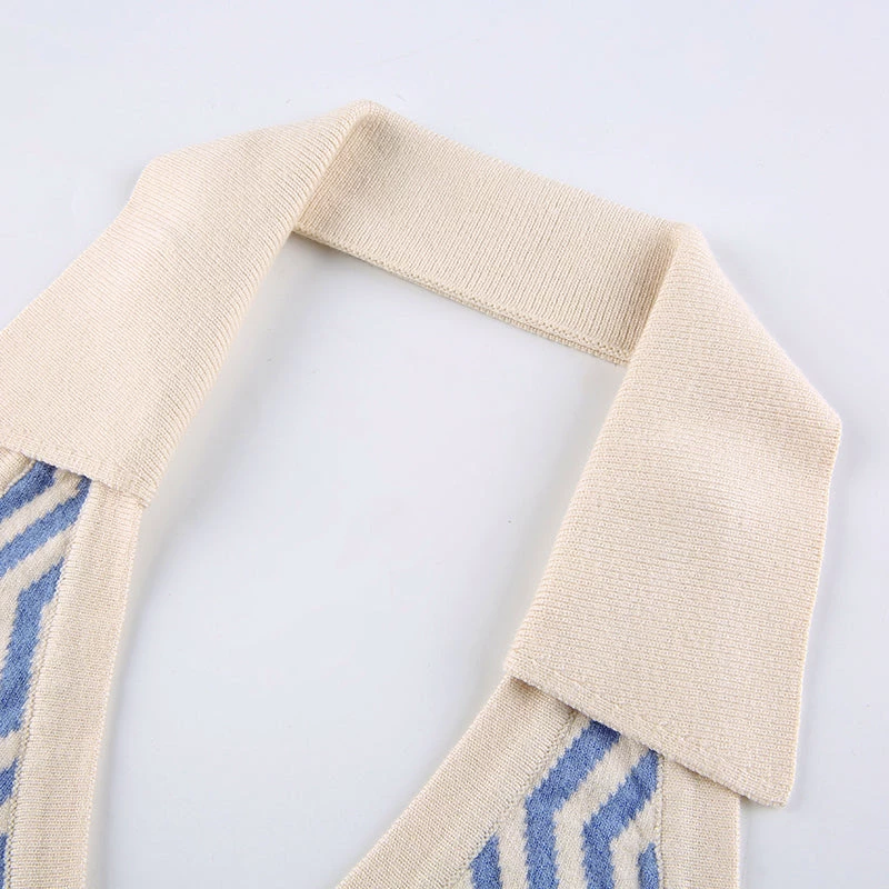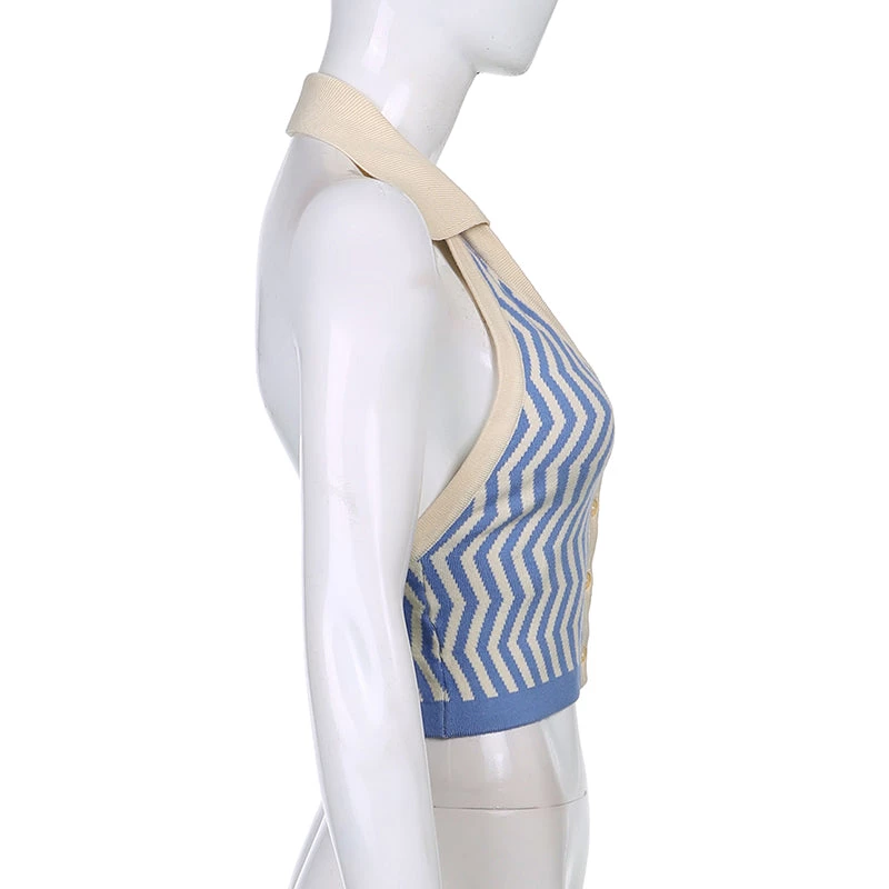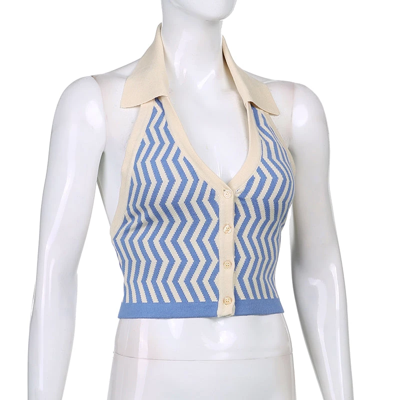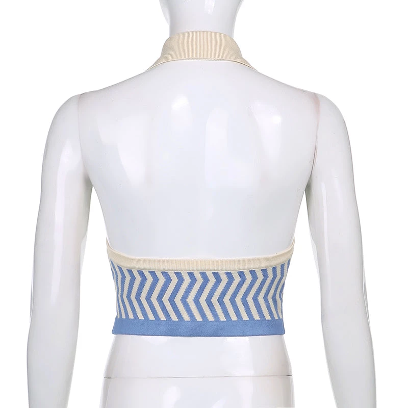 Blue zig zag knitted halter backless top.
