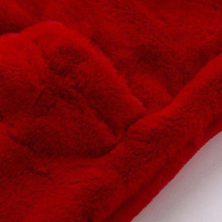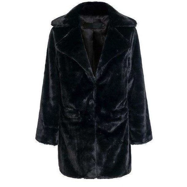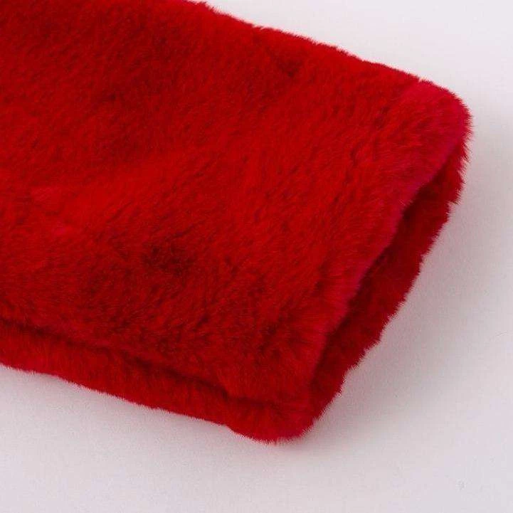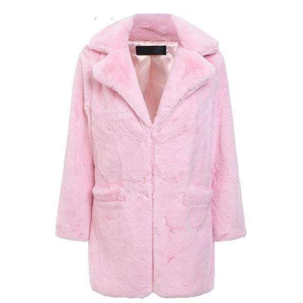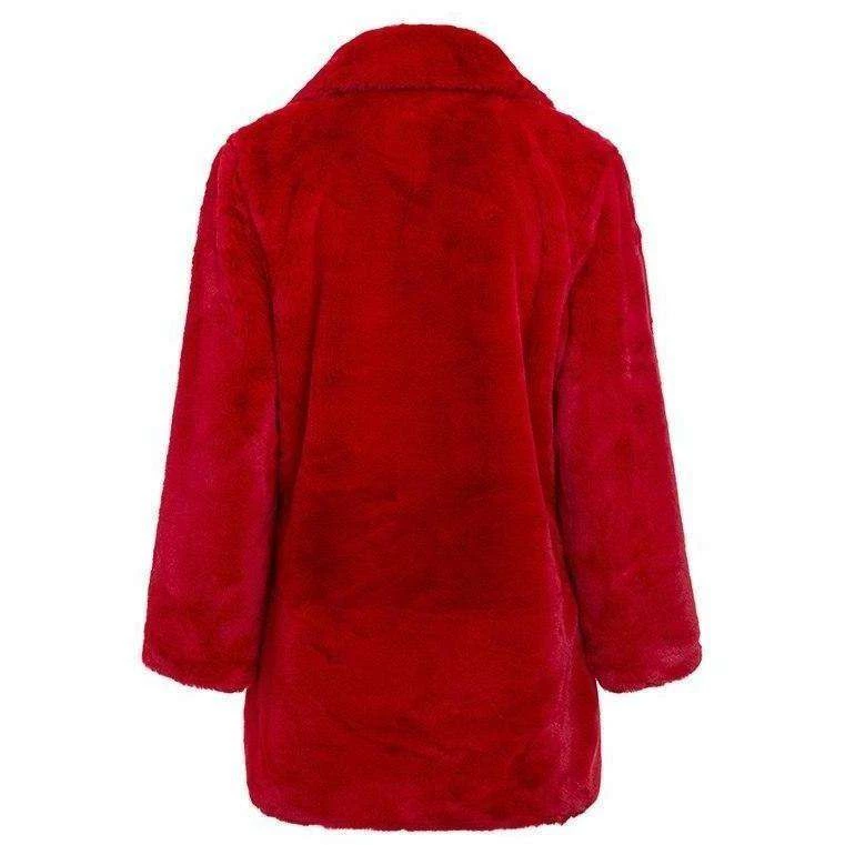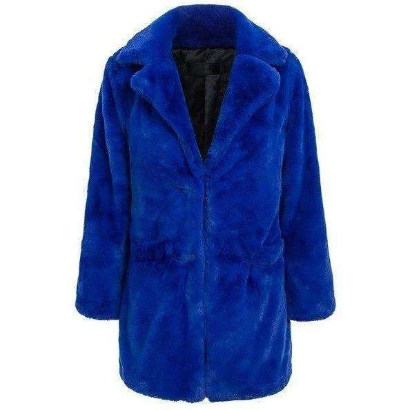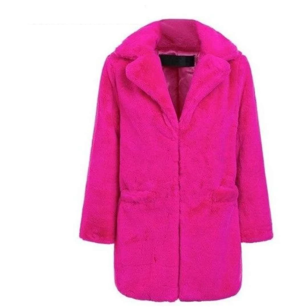 Brightly coloured, single breasted faux fur thigh-length lined coat.