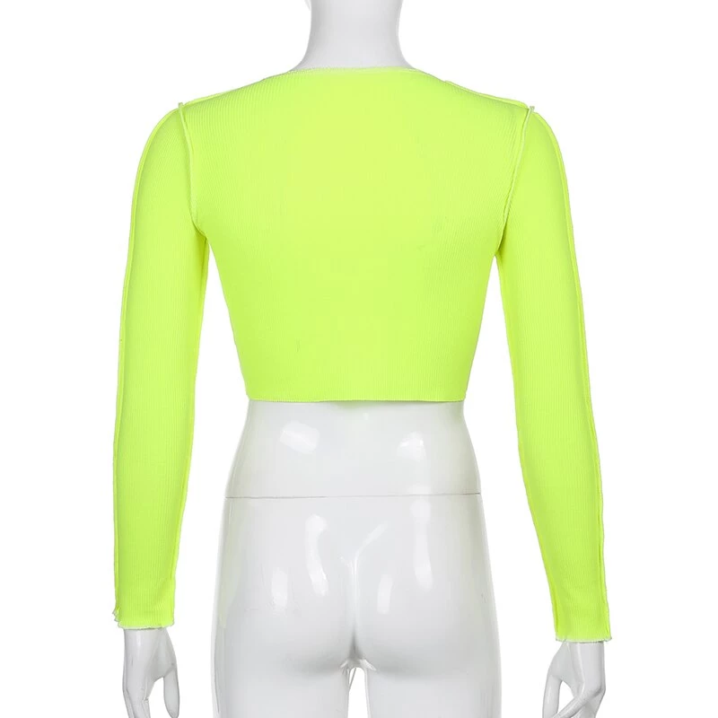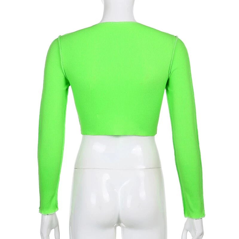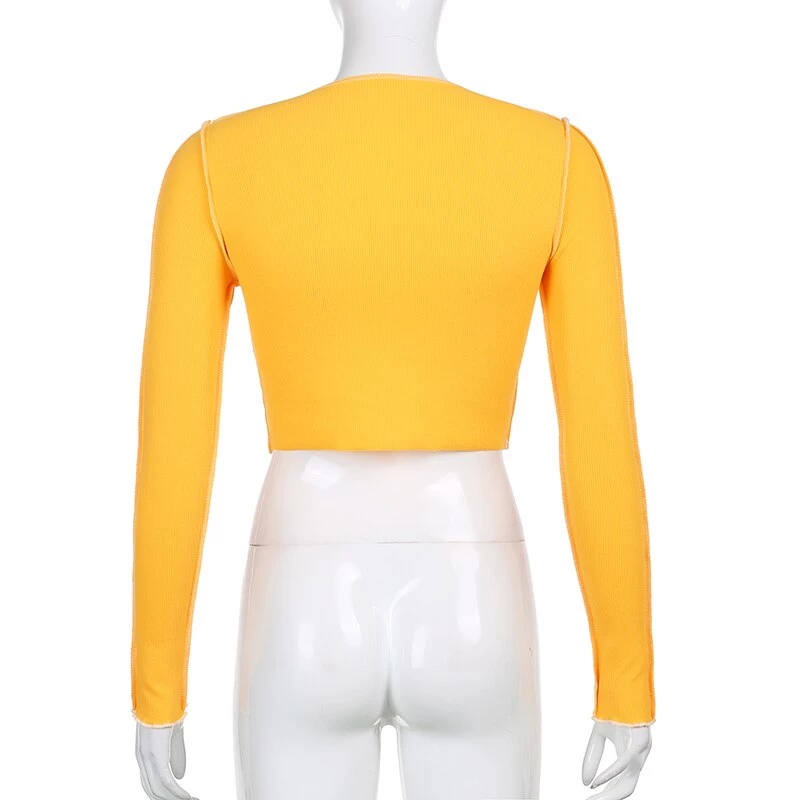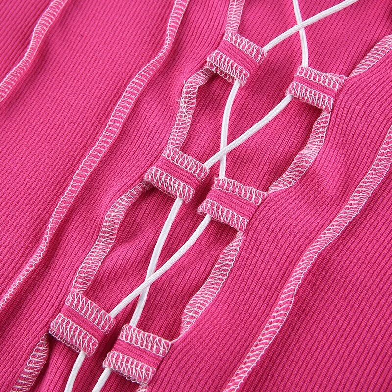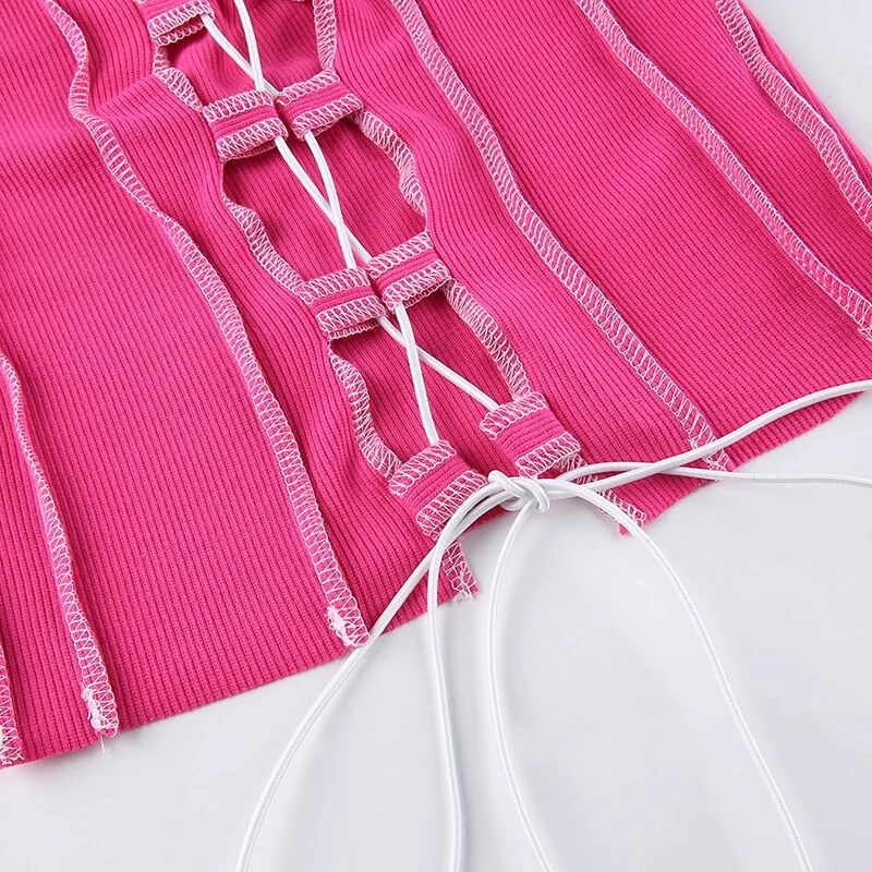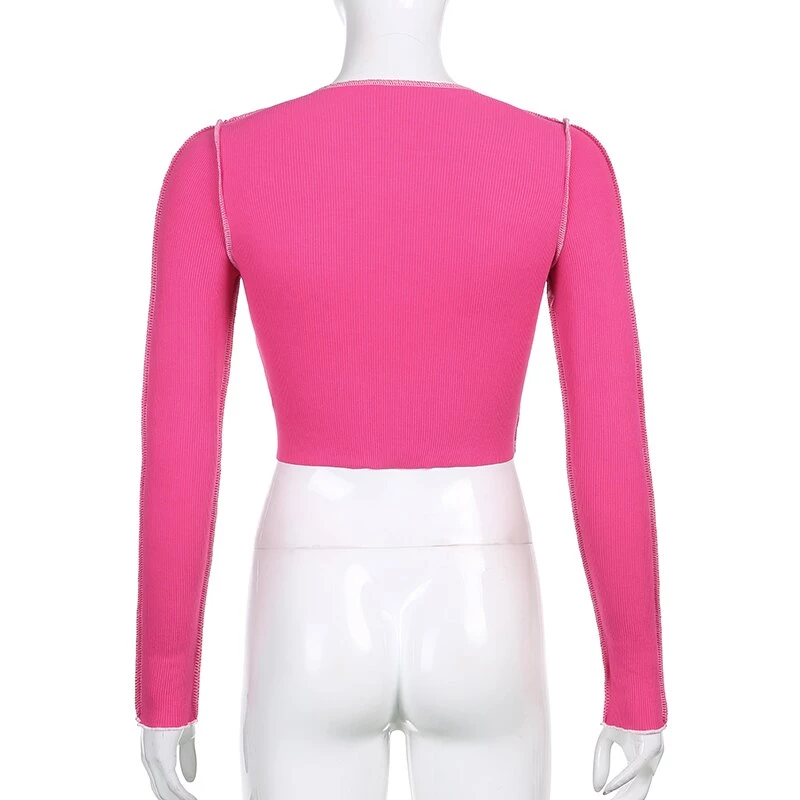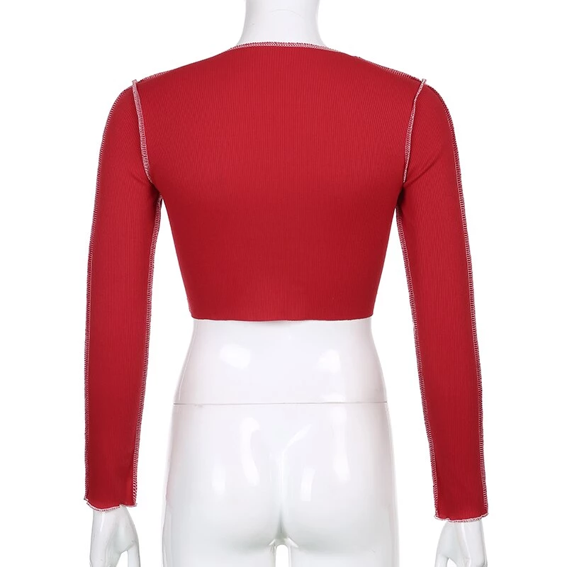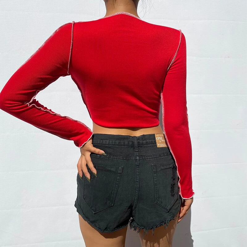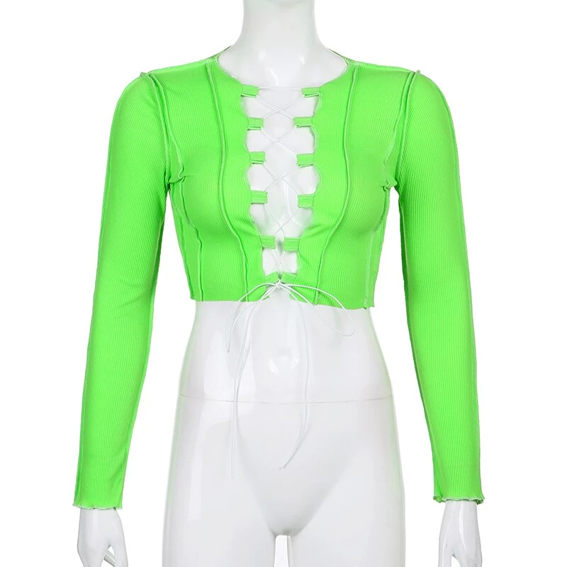 Long sleeved crop top with contrast stitching and a lace up centre design.