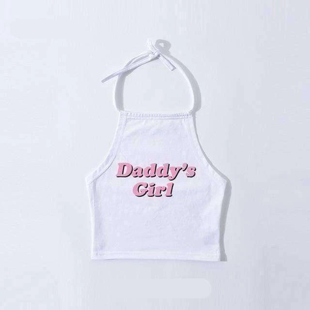 Black or white halter neck cropped top with print ‘DADDY’S GIRL’ print.
