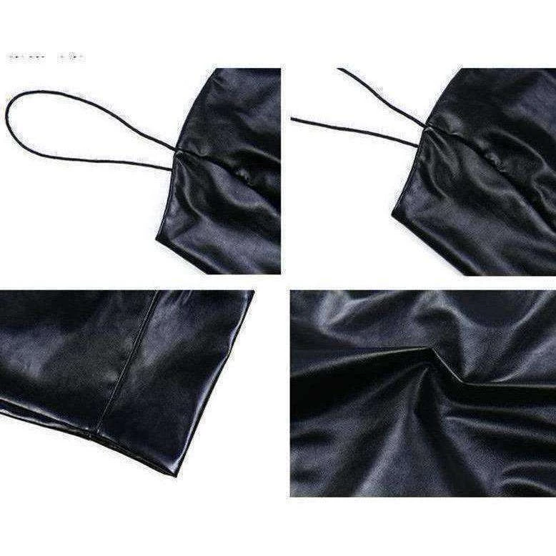 Black faux leather cami crop.