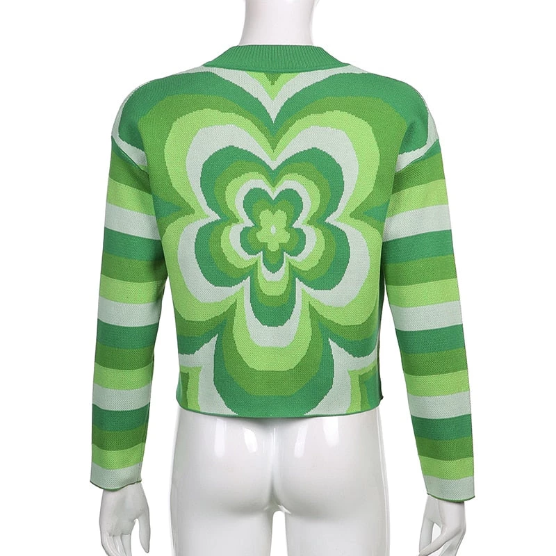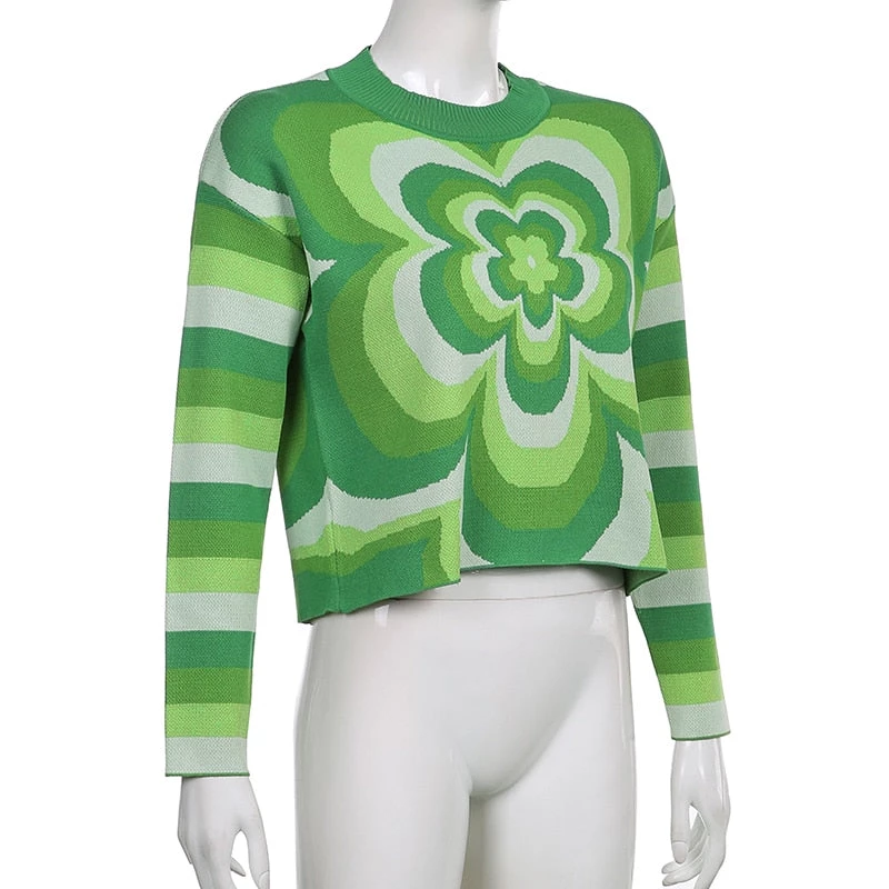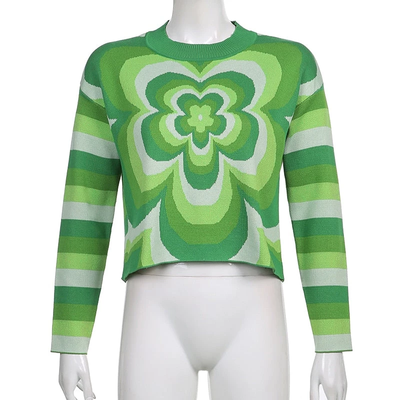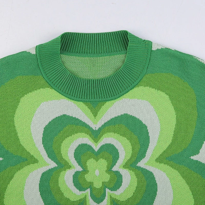 Green knit flower jumper sweater.