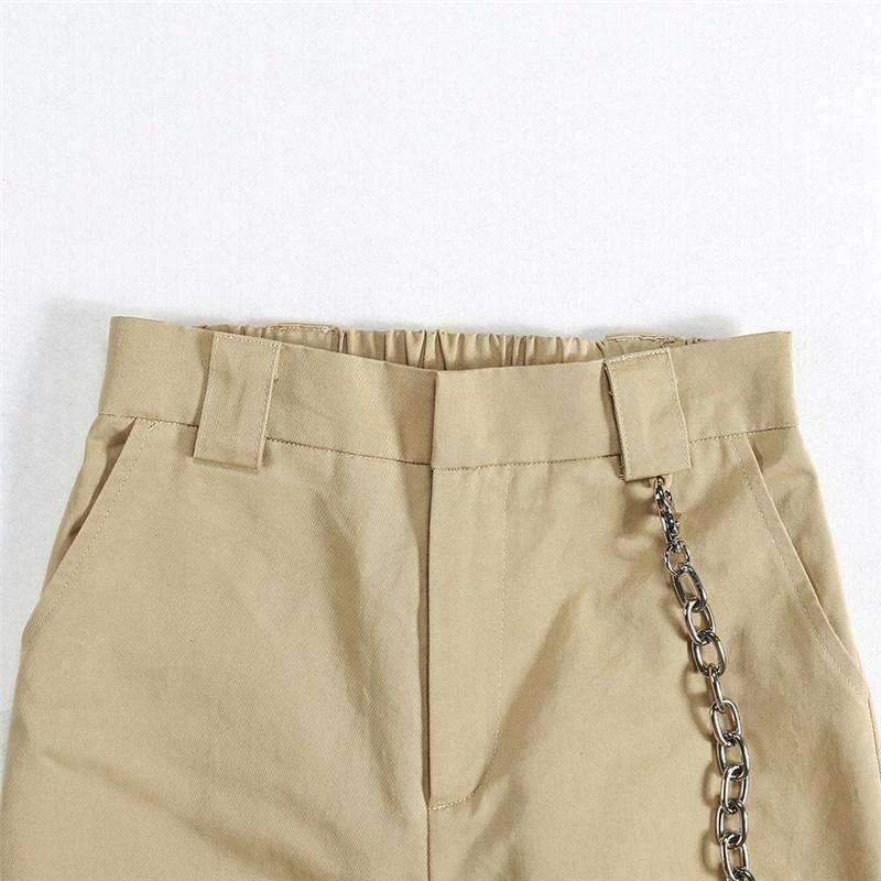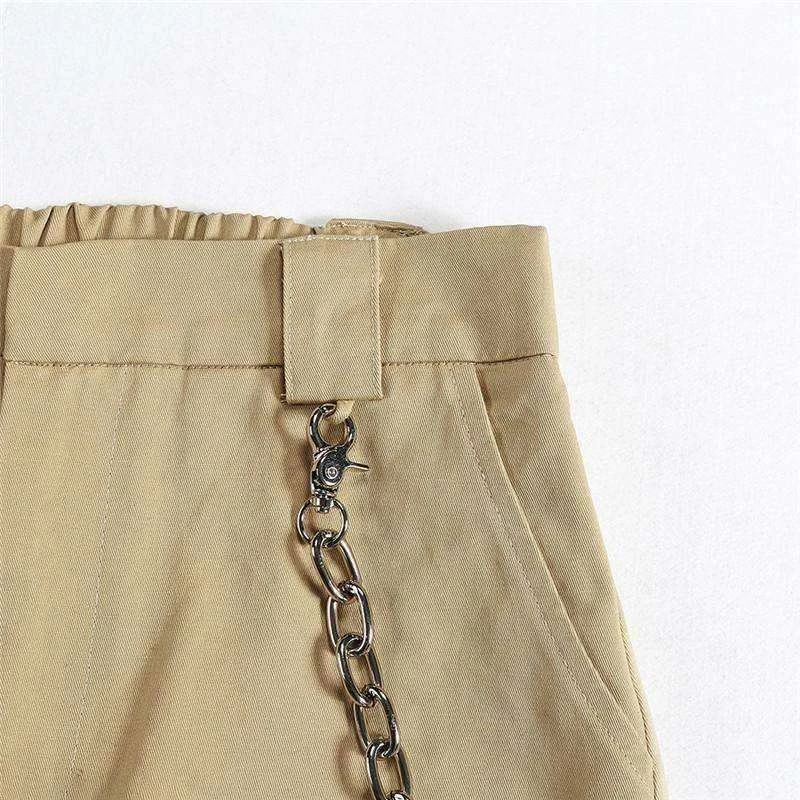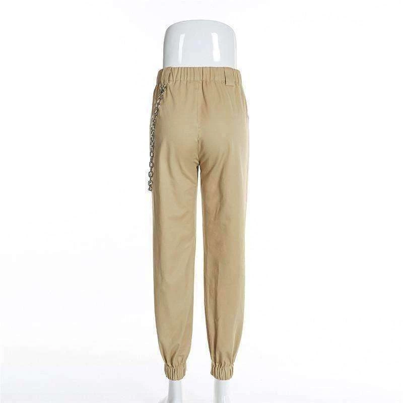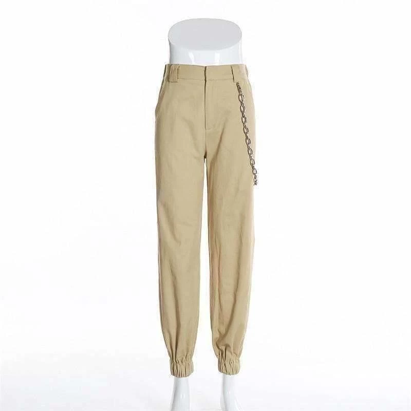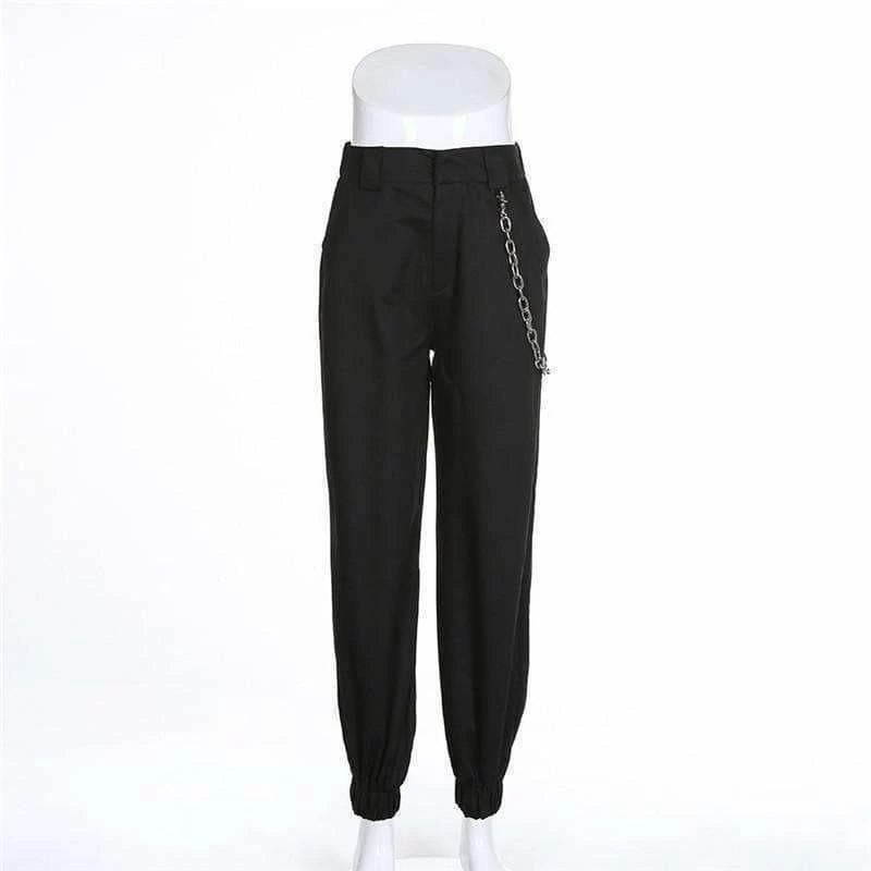 Casual trousers with an elasticated cuff hem and chain decoration.