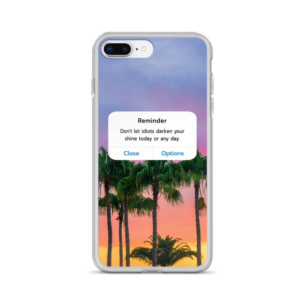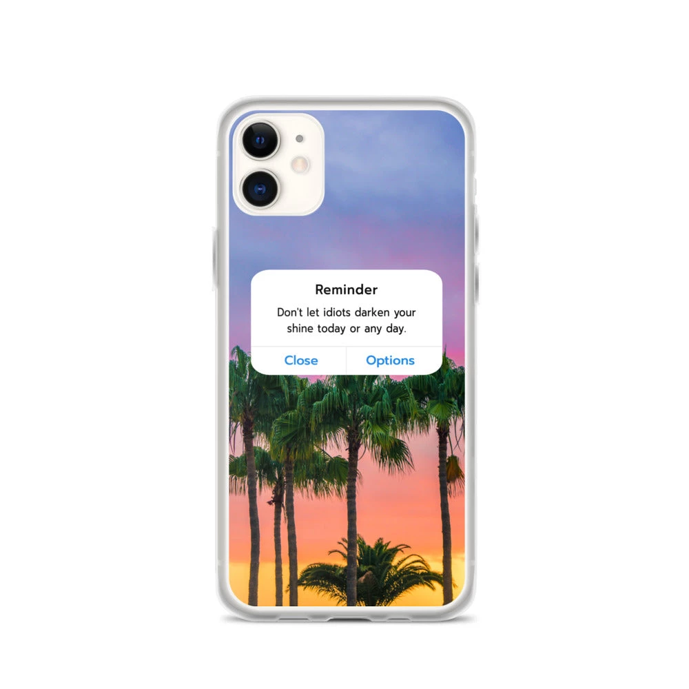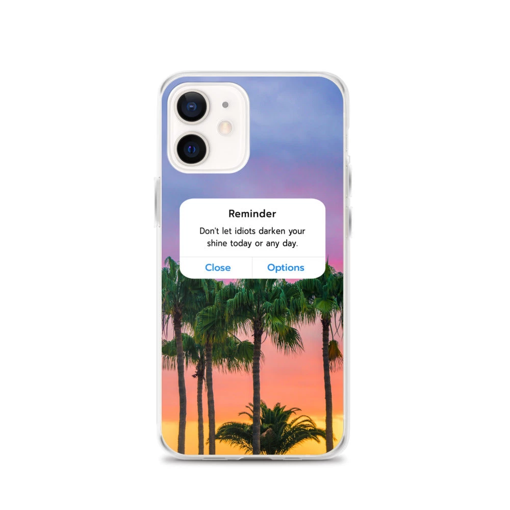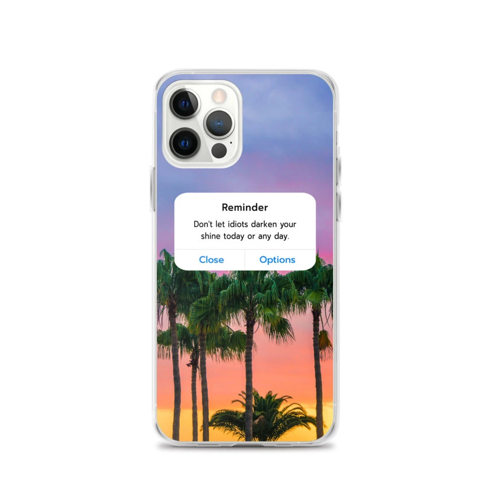 Tropical background and ‘don’t let idiots darken your shine today or any day’ reminder box iPhone case.