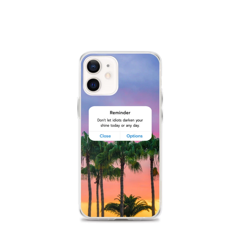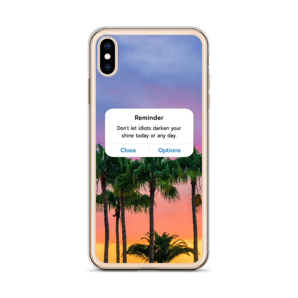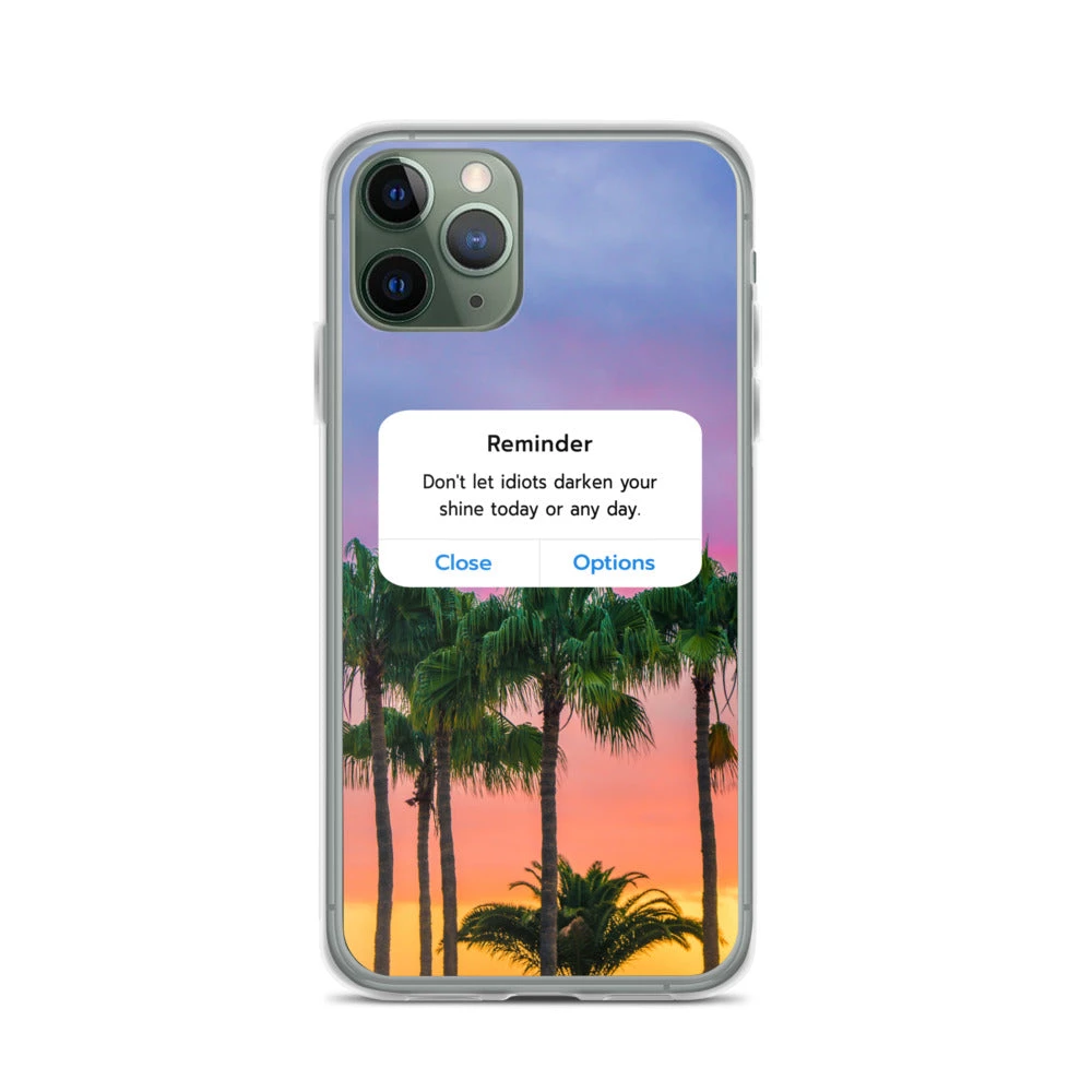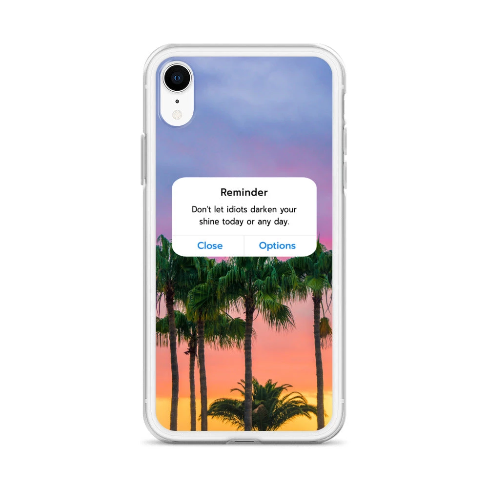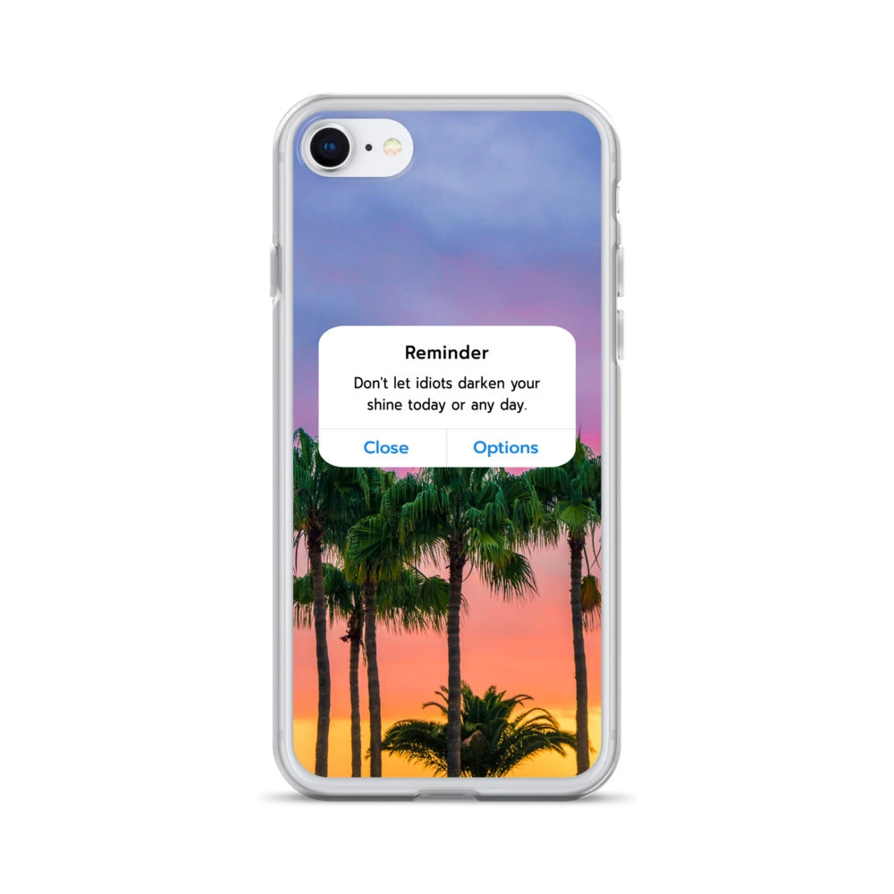 Tropical background and ‘don’t let idiots darken your shine today or any day’ reminder box iPhone case.
