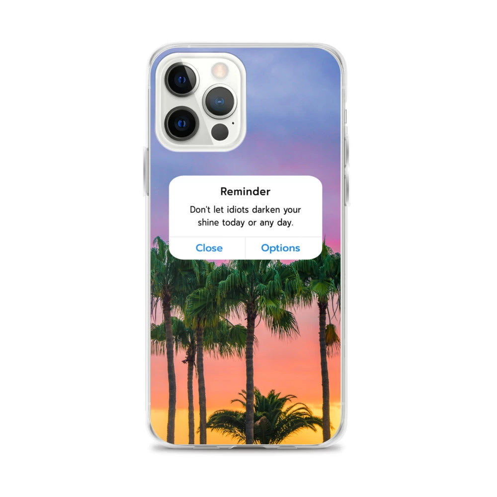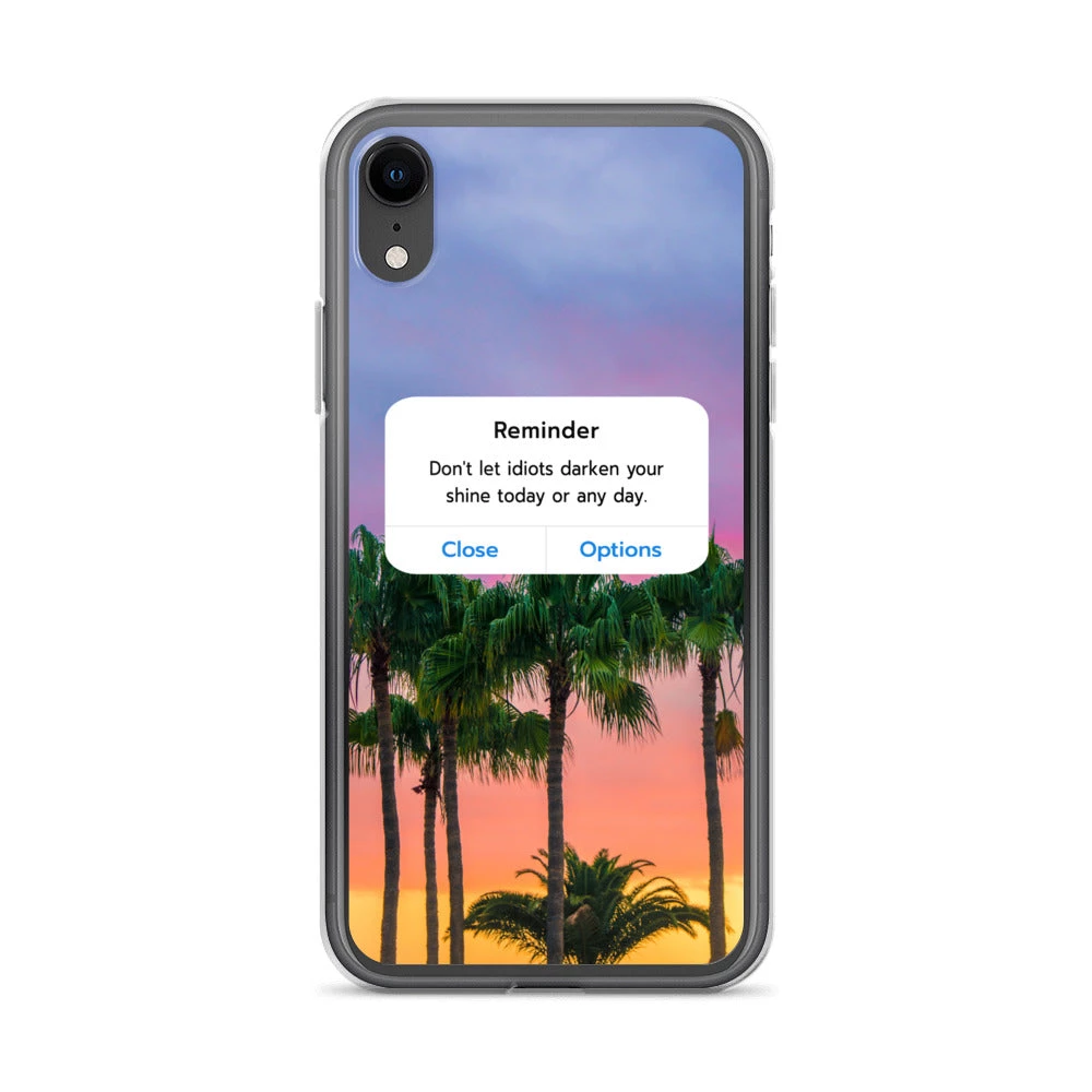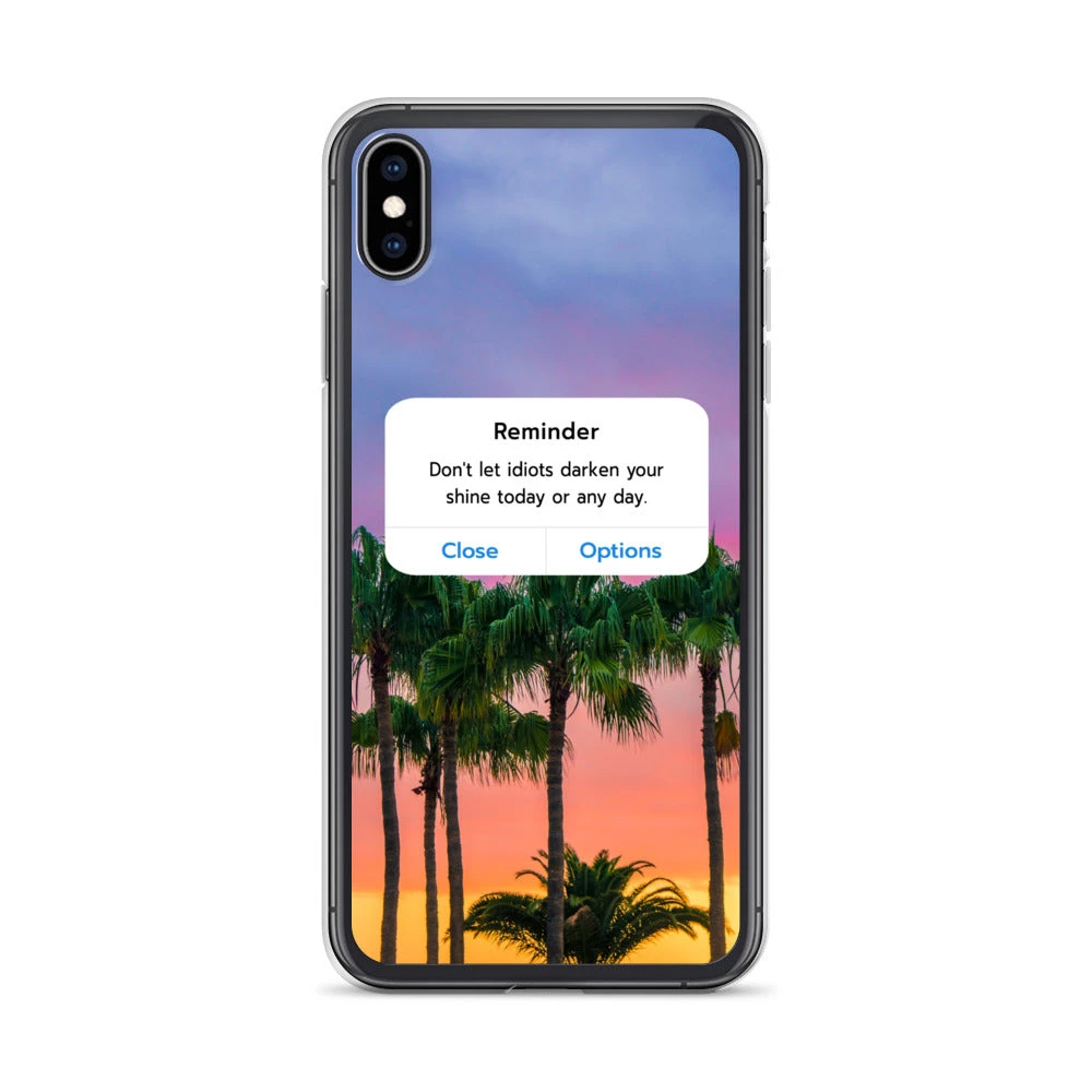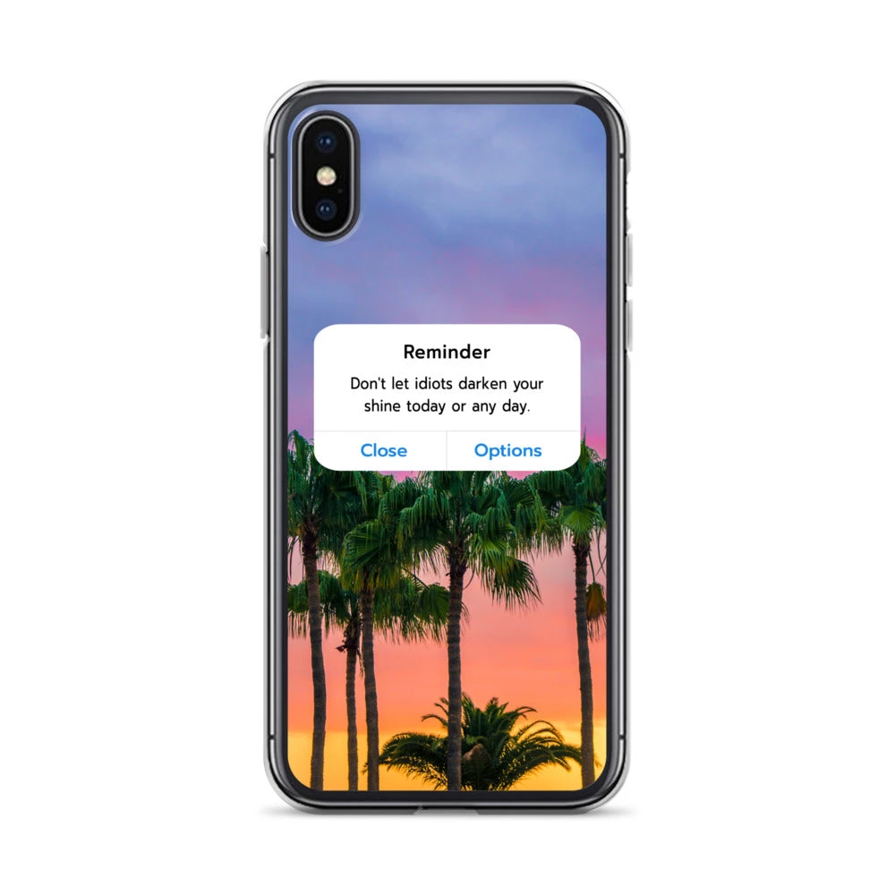 Tropical background and ‘don’t let idiots darken your shine today or any day’ reminder box iPhone case.