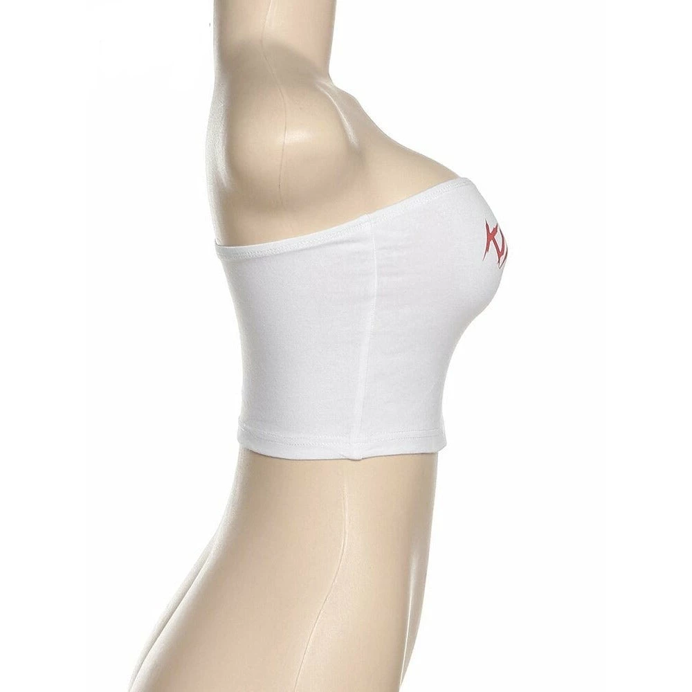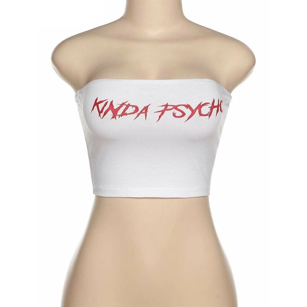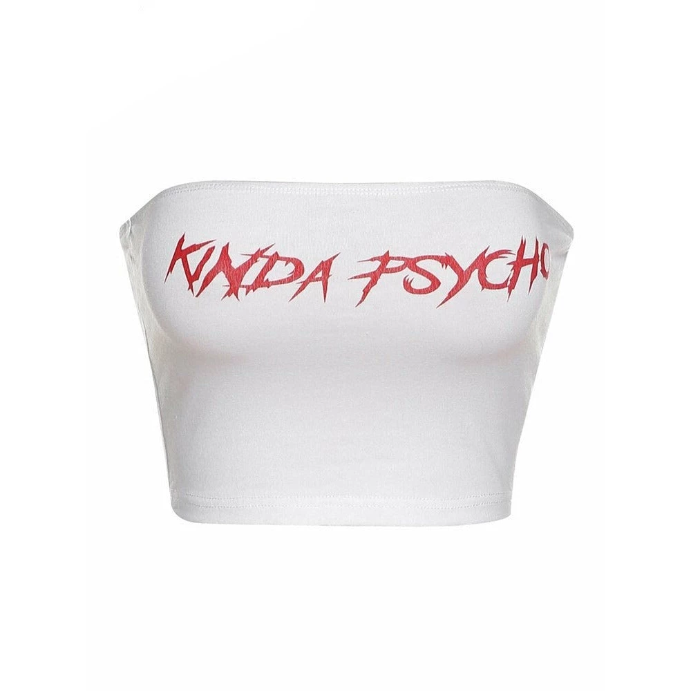 White ‘KINDA PSYCHO’ slogan print tube top.