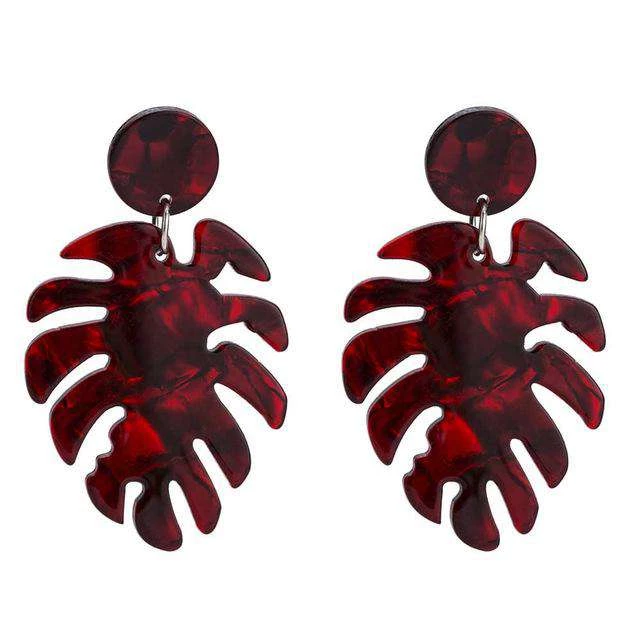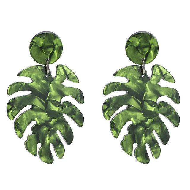 Large, coloured leaf drop statement earring.