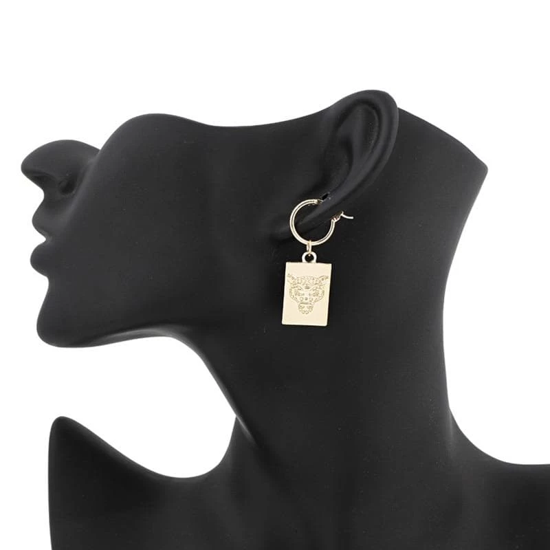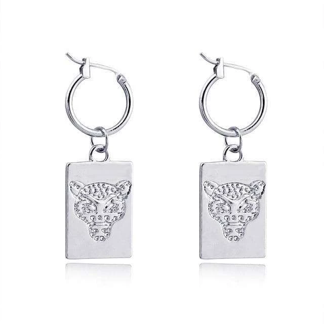Gold or silver coloured mini hoop earrings with a leopard printed tag.