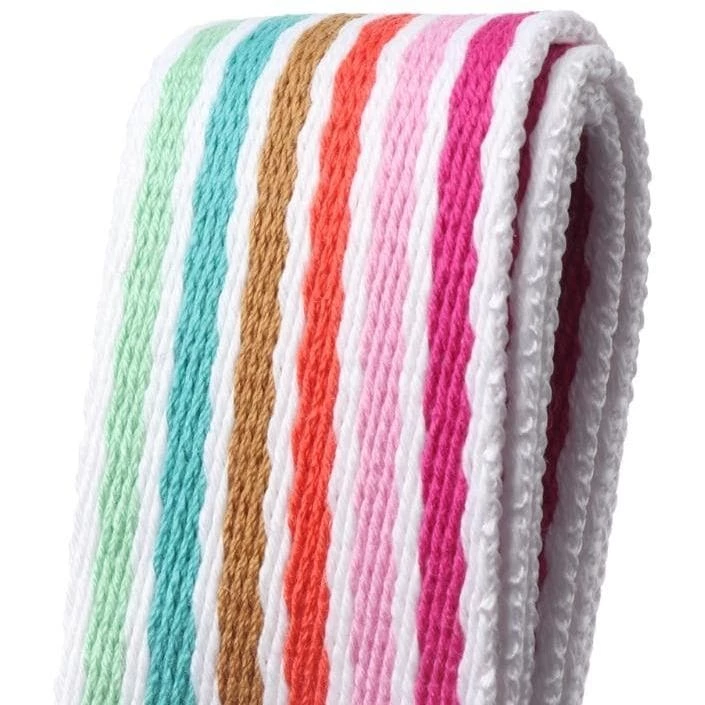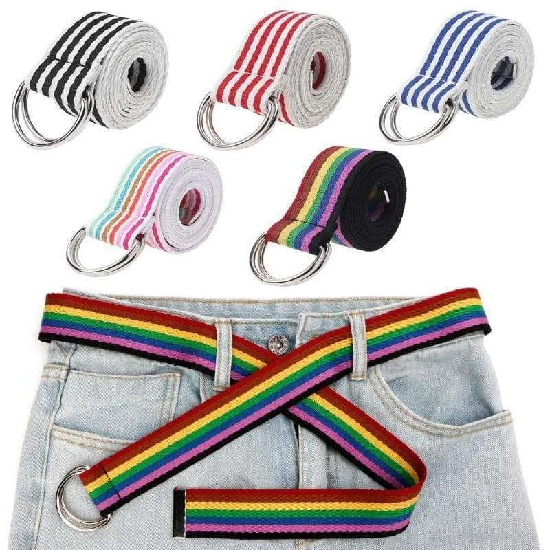 Long coloured striped canvas belt. 130cm length.