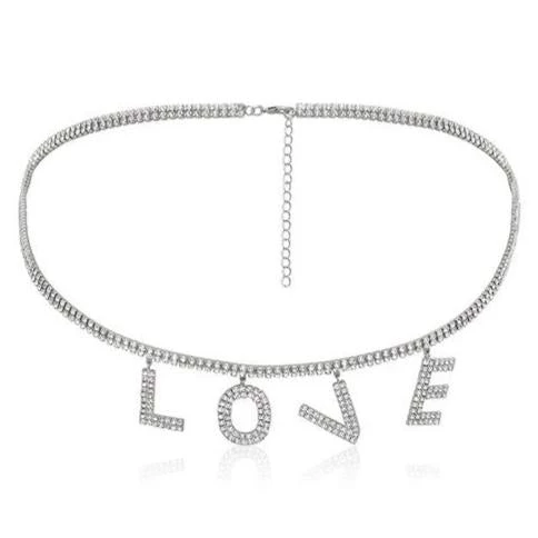 Diamante waist belt with a dangling ‘LOVE’ slogan.