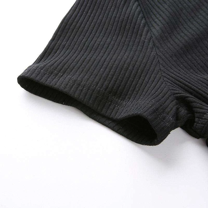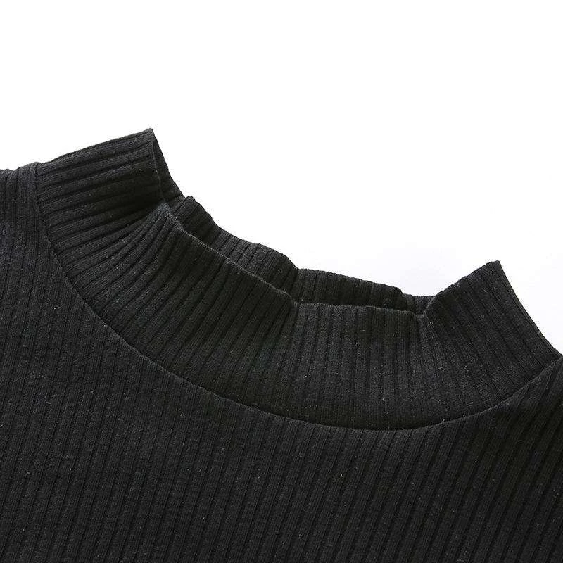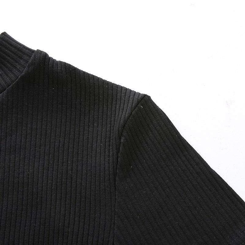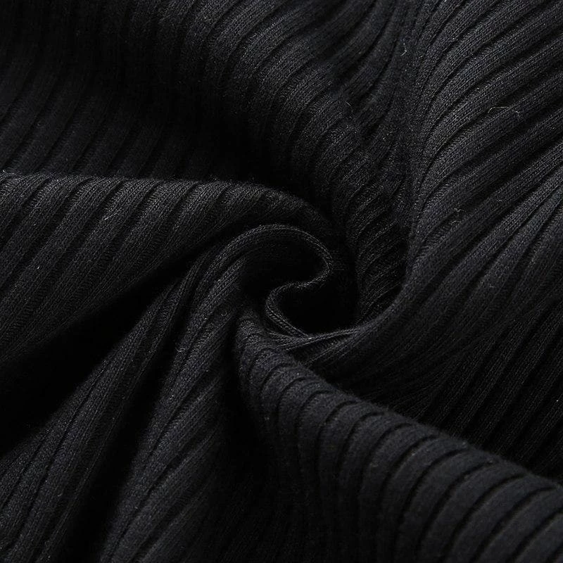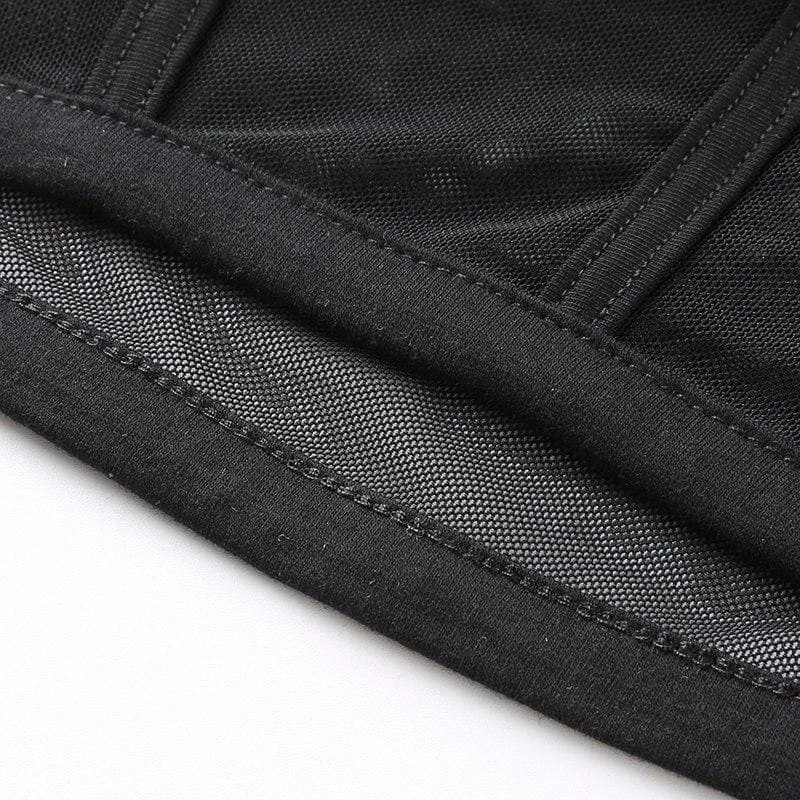 Black ribbed and high neck top with a mesh lower half.