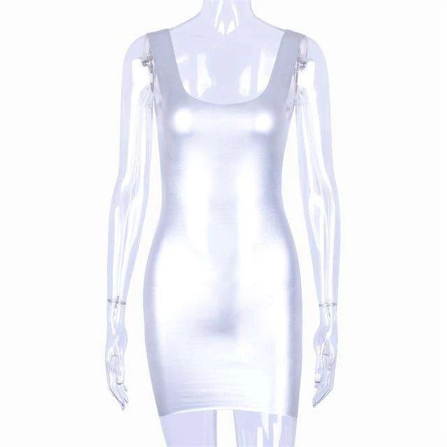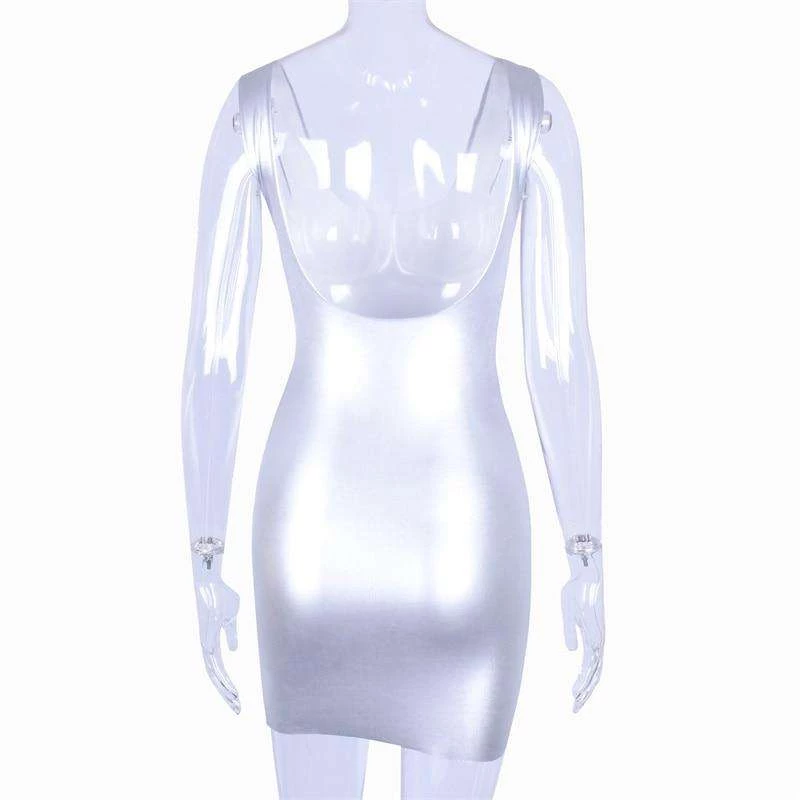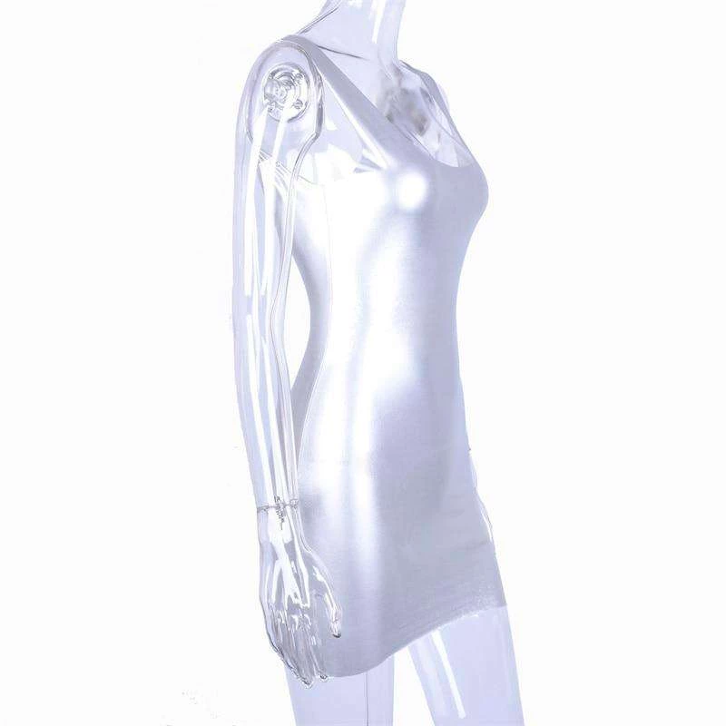 Silver metallic bodycon mini dress.