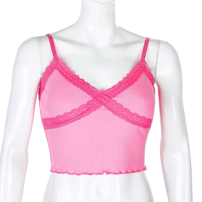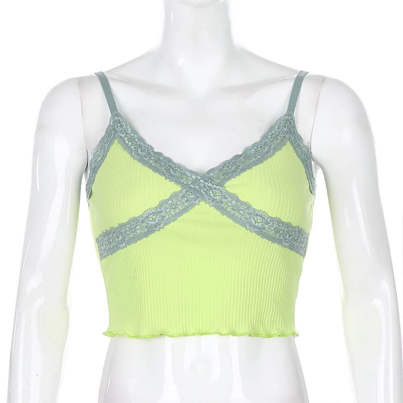 Own Saviour Neon Lace Frill Cami Crop New In