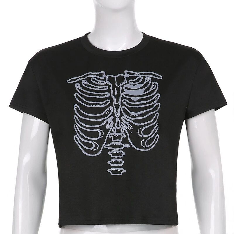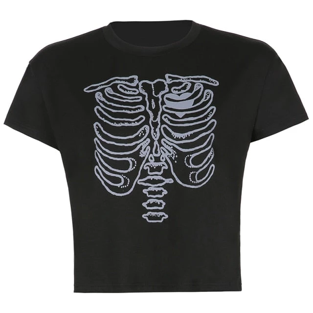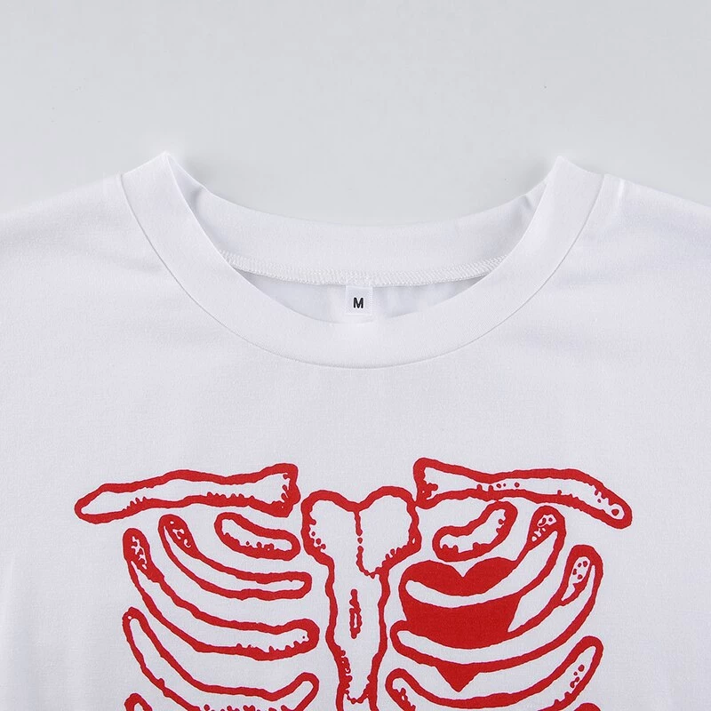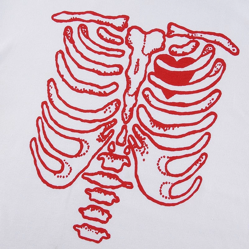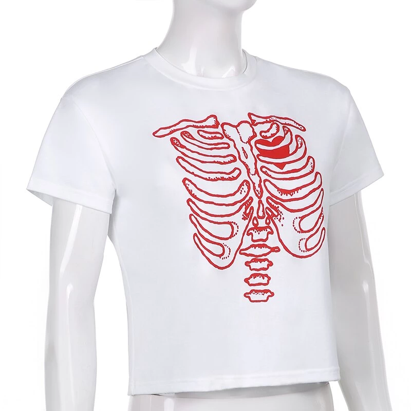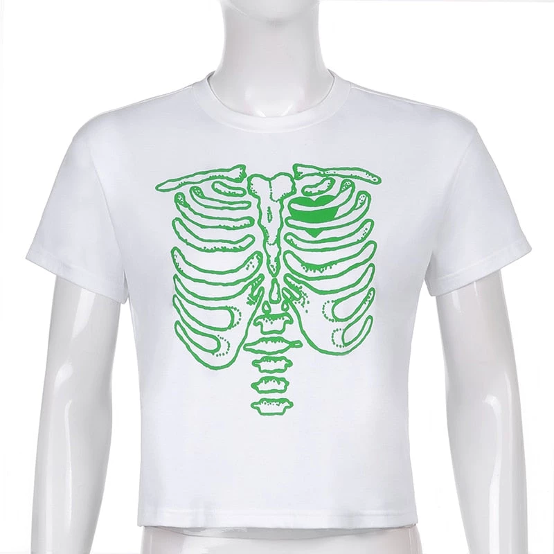 White or black tee with a coloured skeleton ribs print.