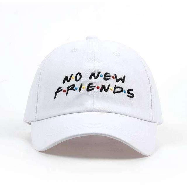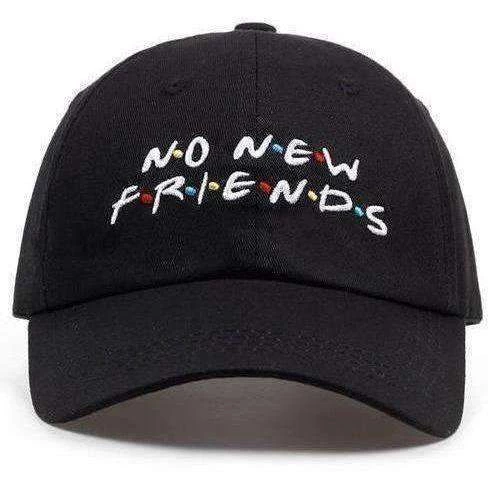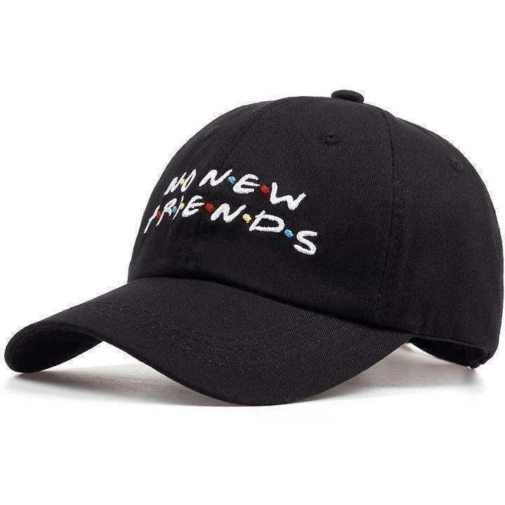 Black or white ‘NO NEW FRIENDS’ embroidered parody Friends dad hat.