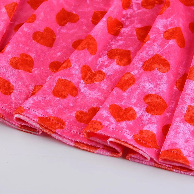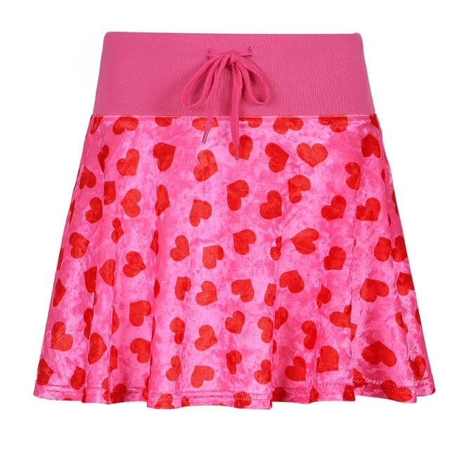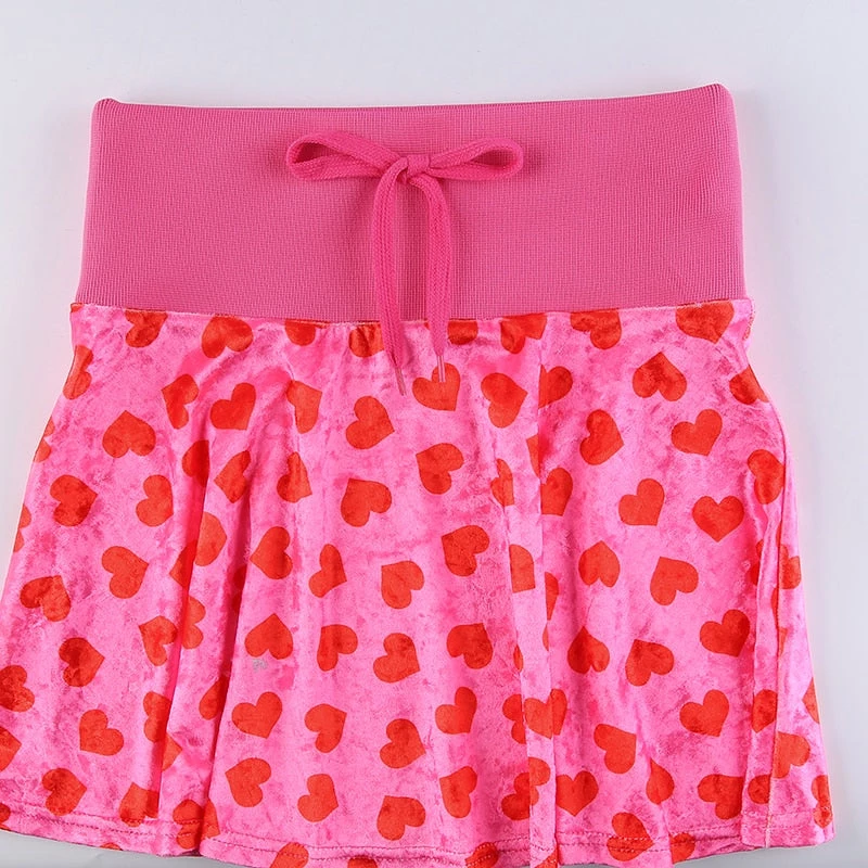 Pink heart velvet mini skirt with a thick elasticated waistband.