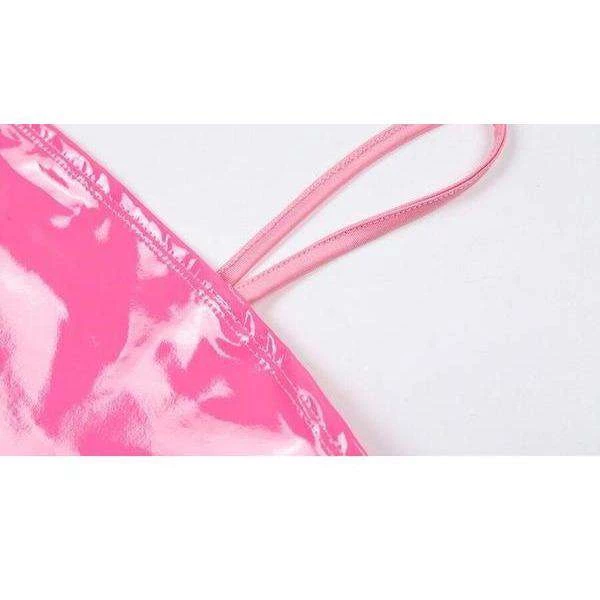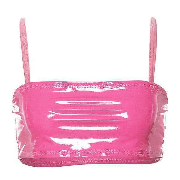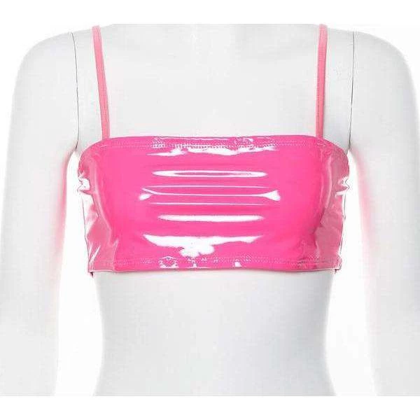 Hot pink PU faux leather vest crop top.