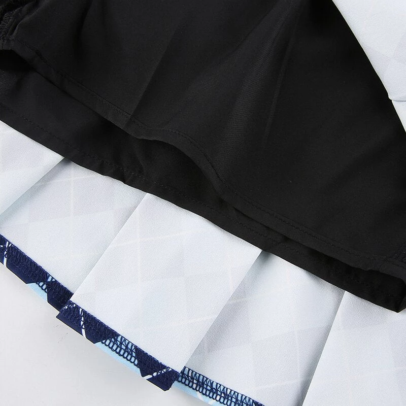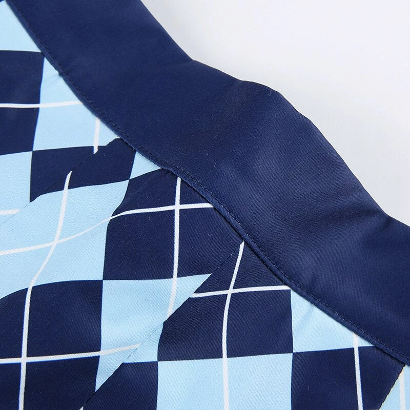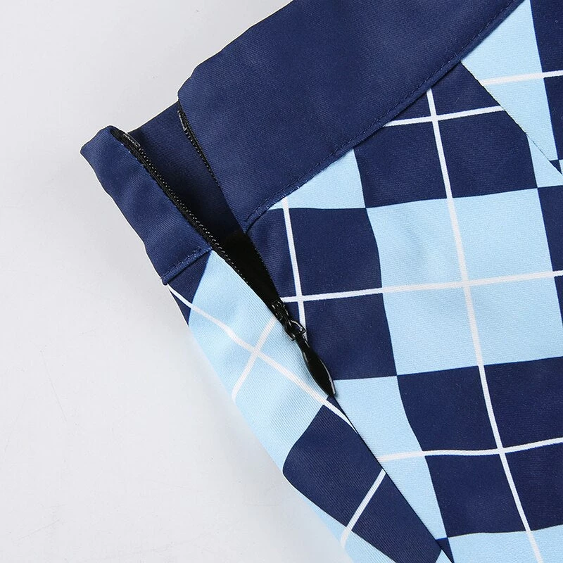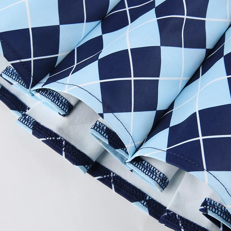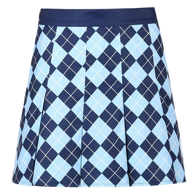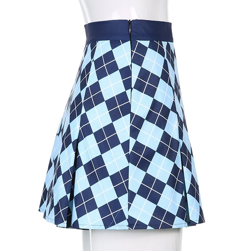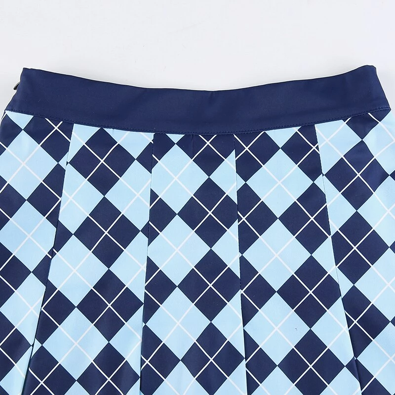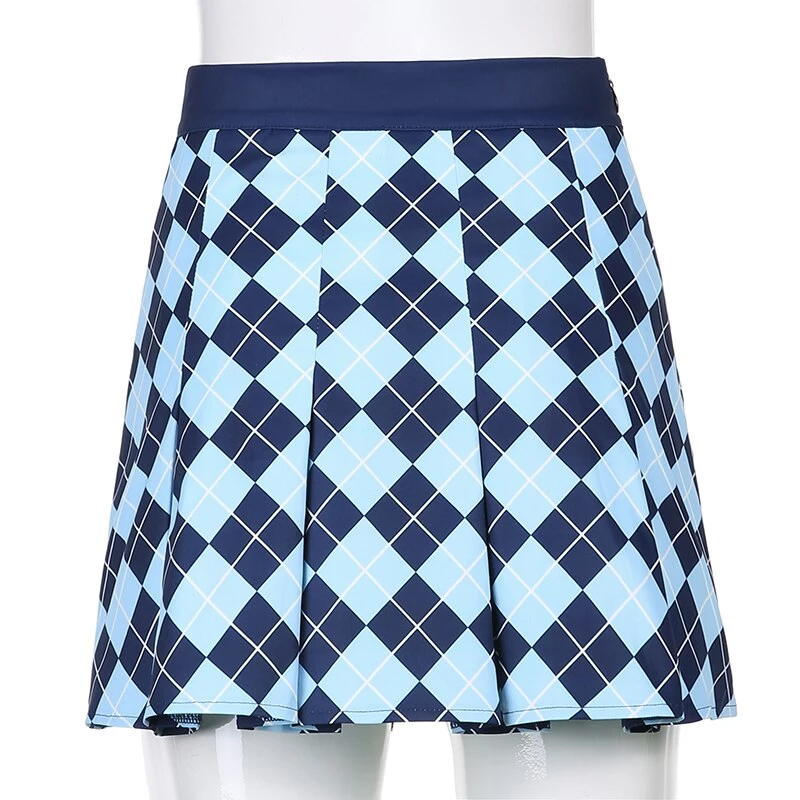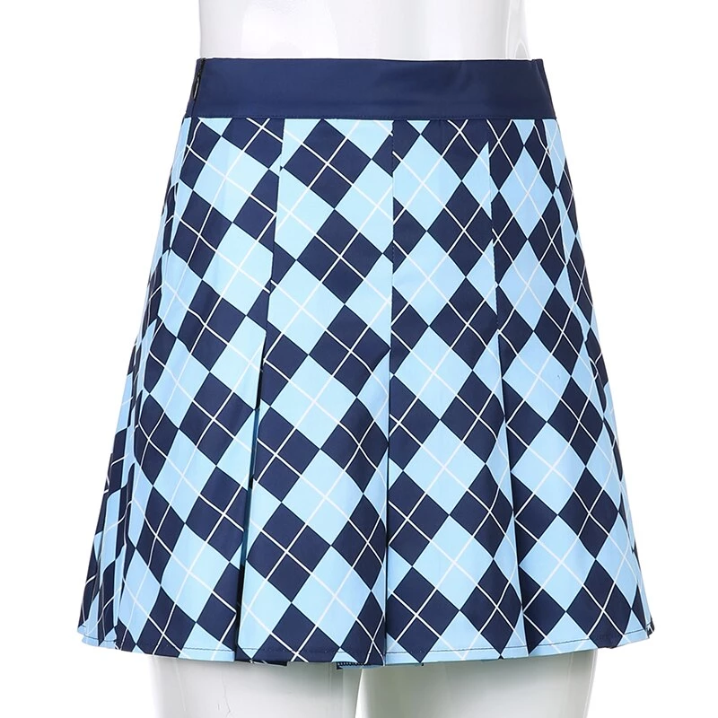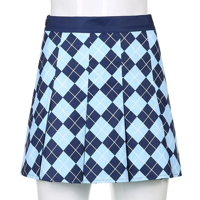 Blue diamond argyle print pleated mini skirt.