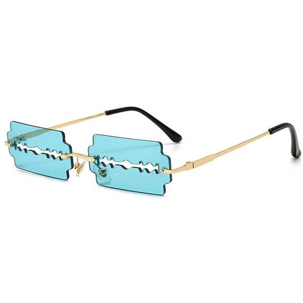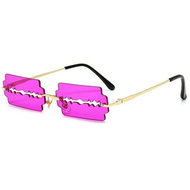 Coloured razorblade-shaped sunglasses.