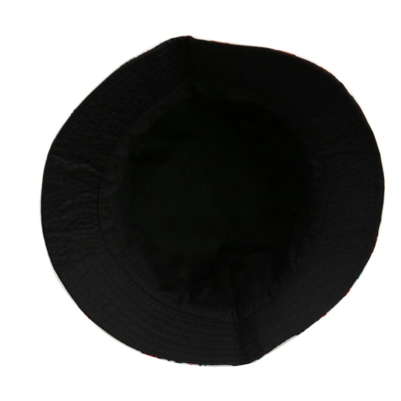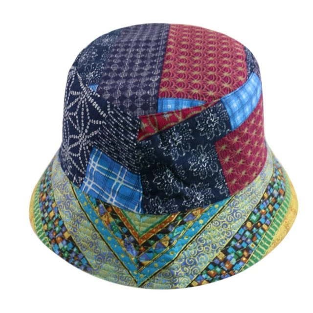 Retro-style patchwork print bucket reversible bucket hat.