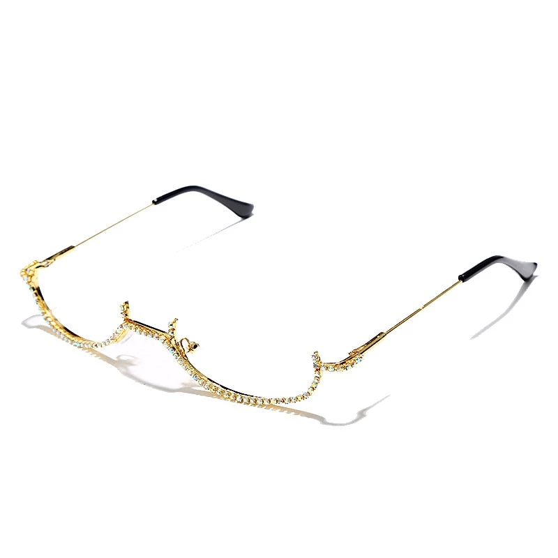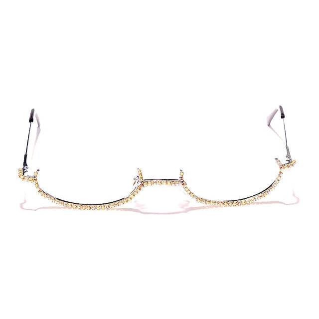 Semi-circle frames with a rhinestone design and without a lens.
