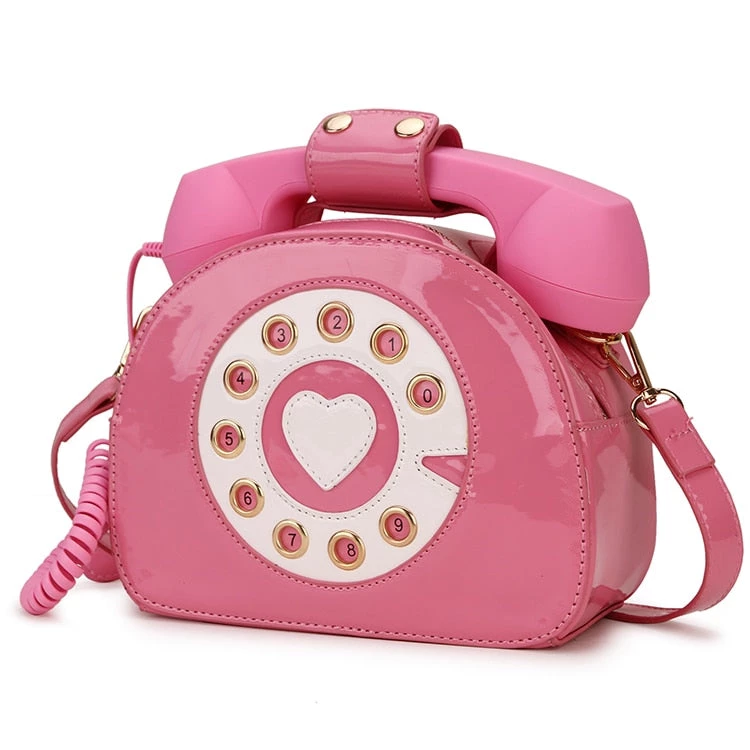 Black, pink or white telephone-shaped handbag.