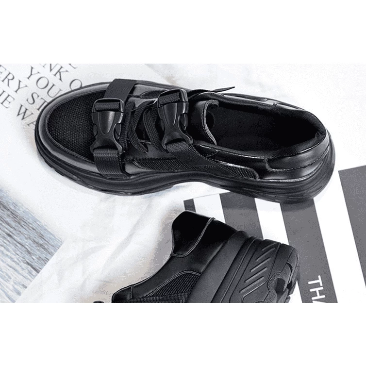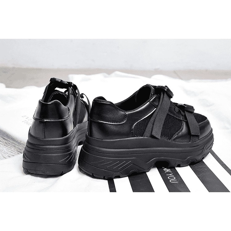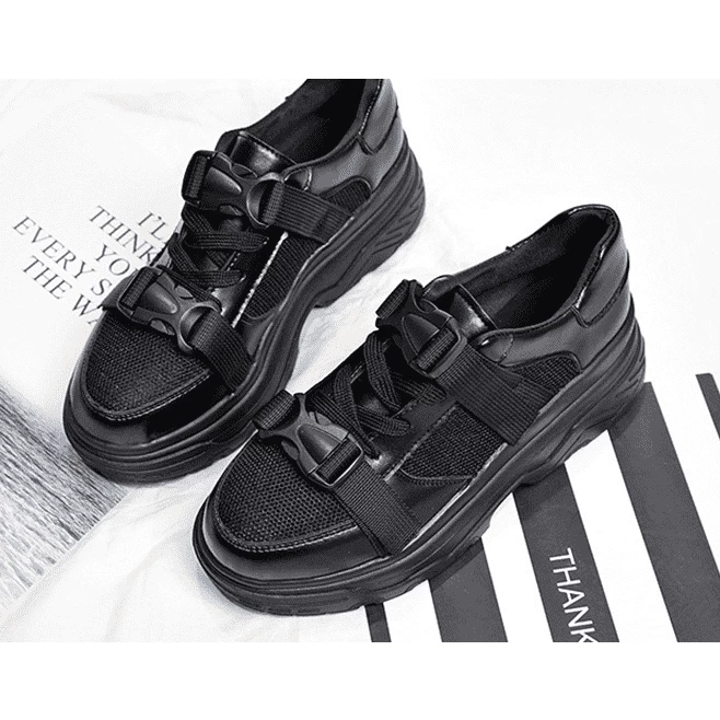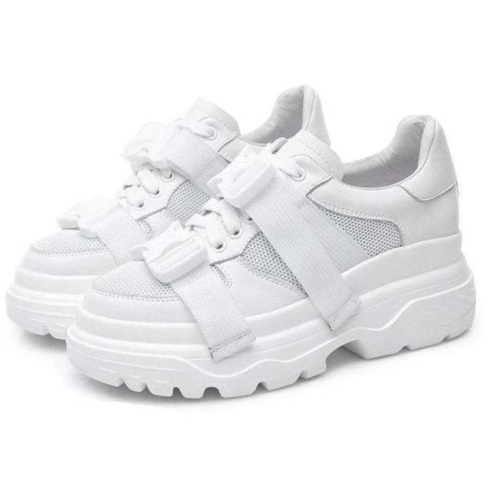 Chunky platform-style trainers with mesh detail and buckle design fastening.