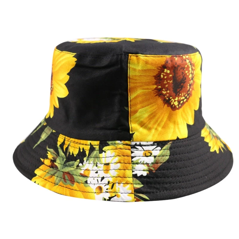Sunflower print bucket hat.