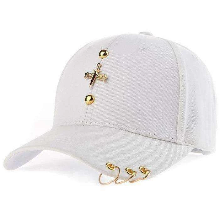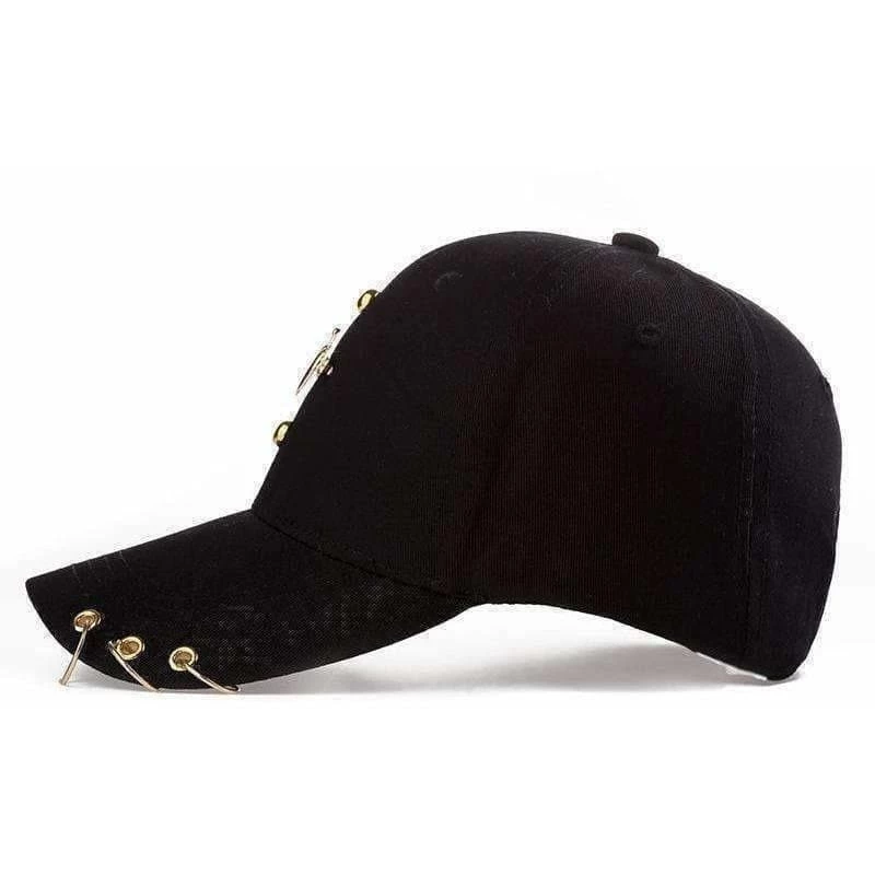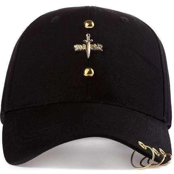 Black, white or pink dad hat/baseball cap with a dagger and ring detail.