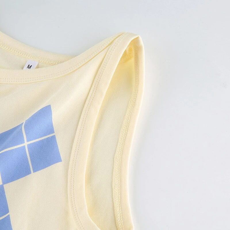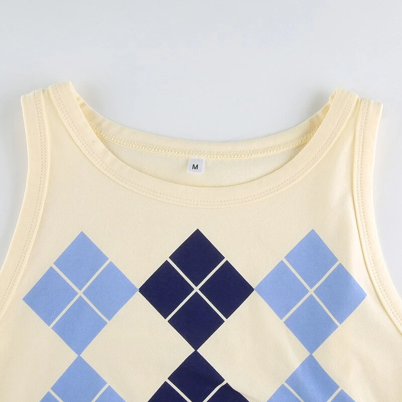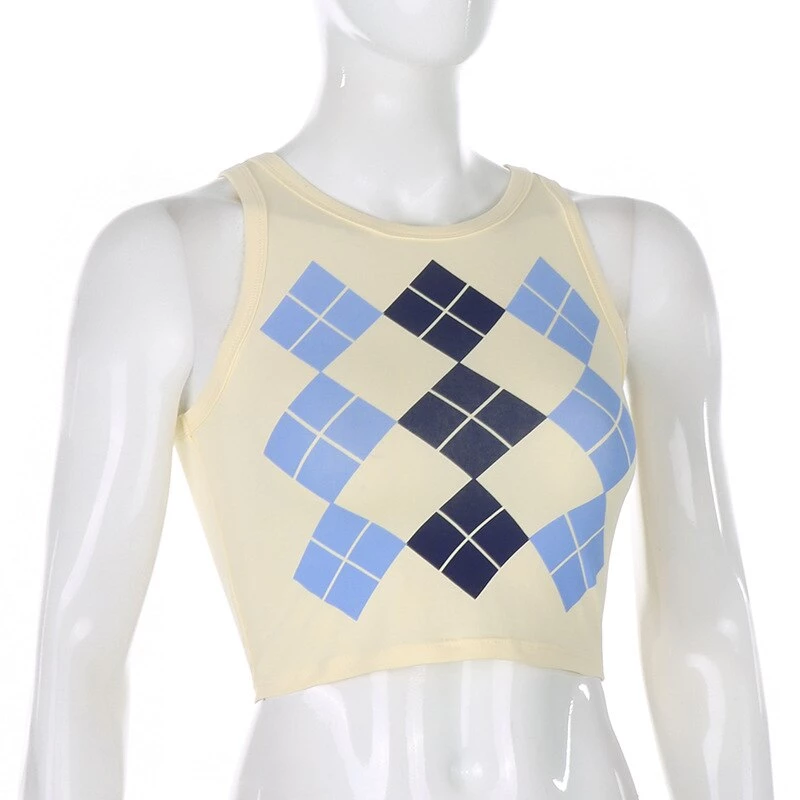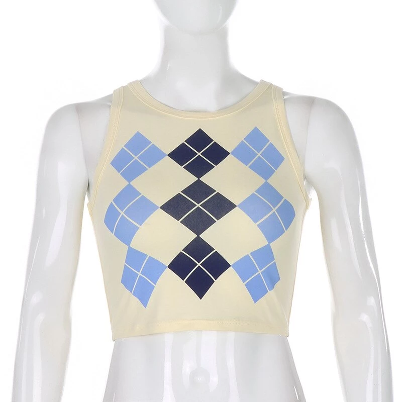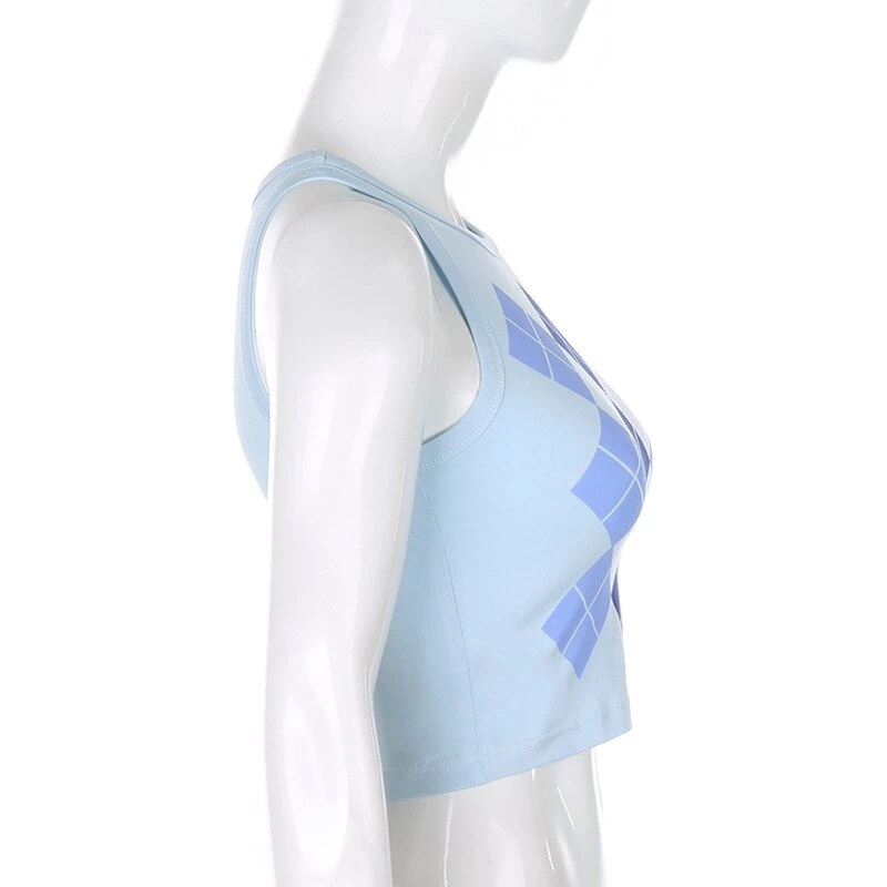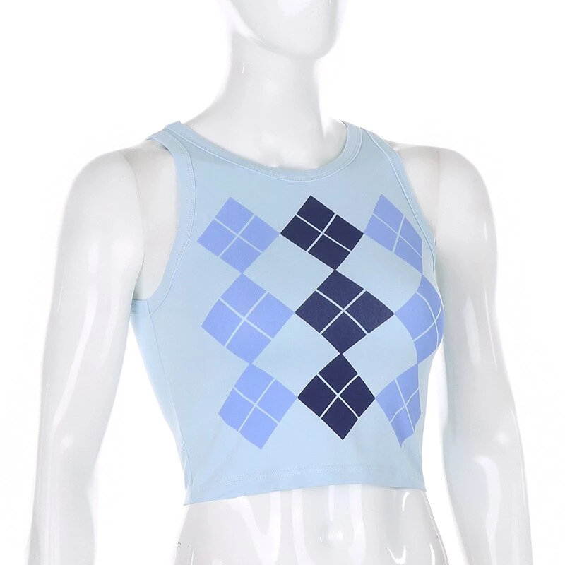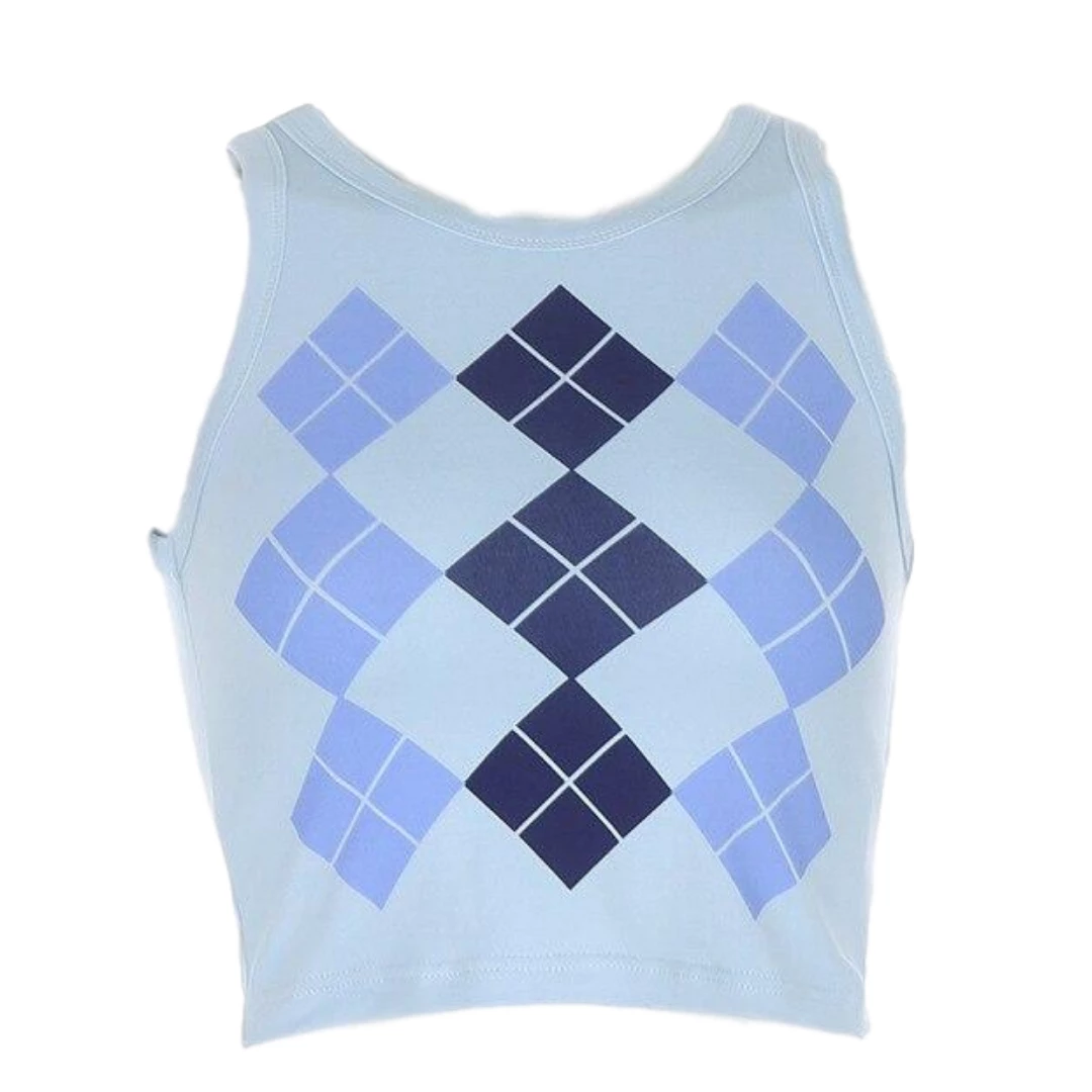 Blue argyle print tank crop top.