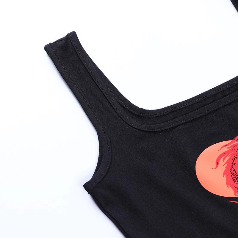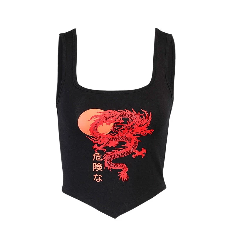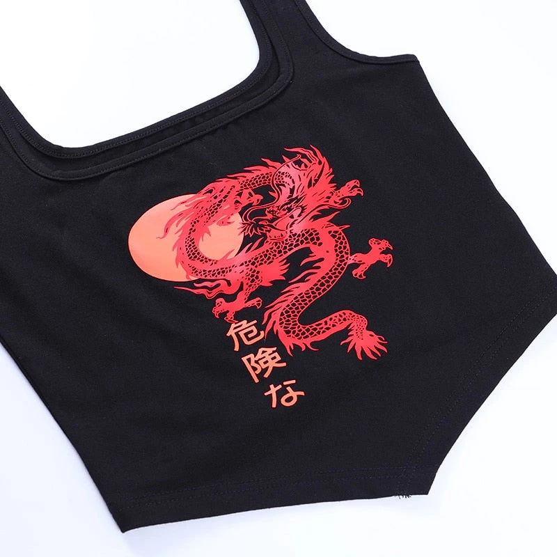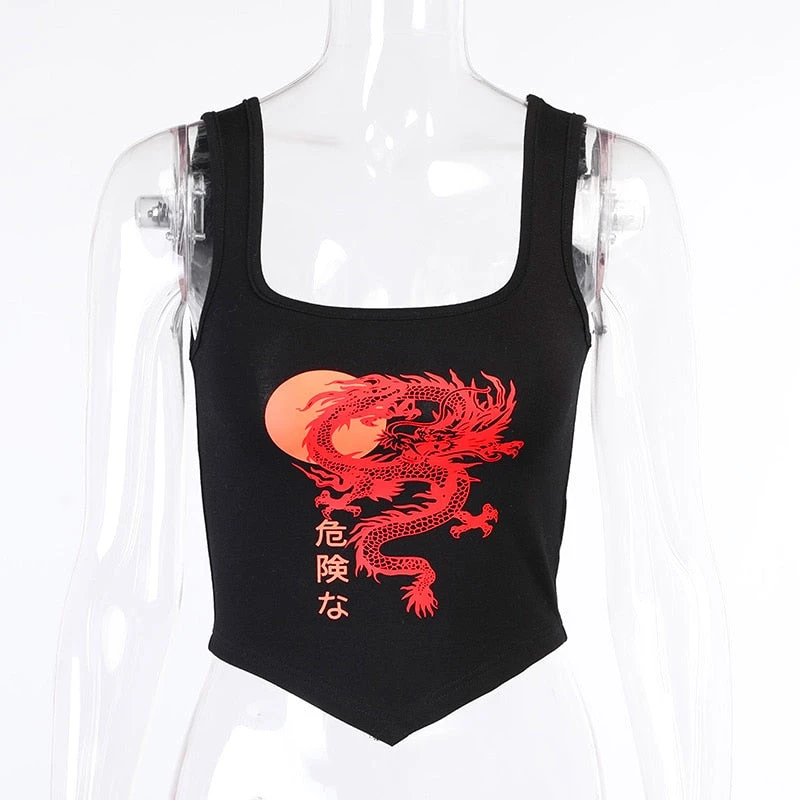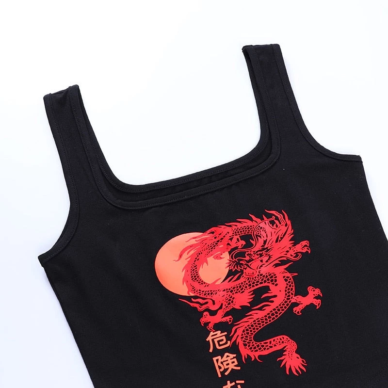 Black point tank crop with a red dragon print.