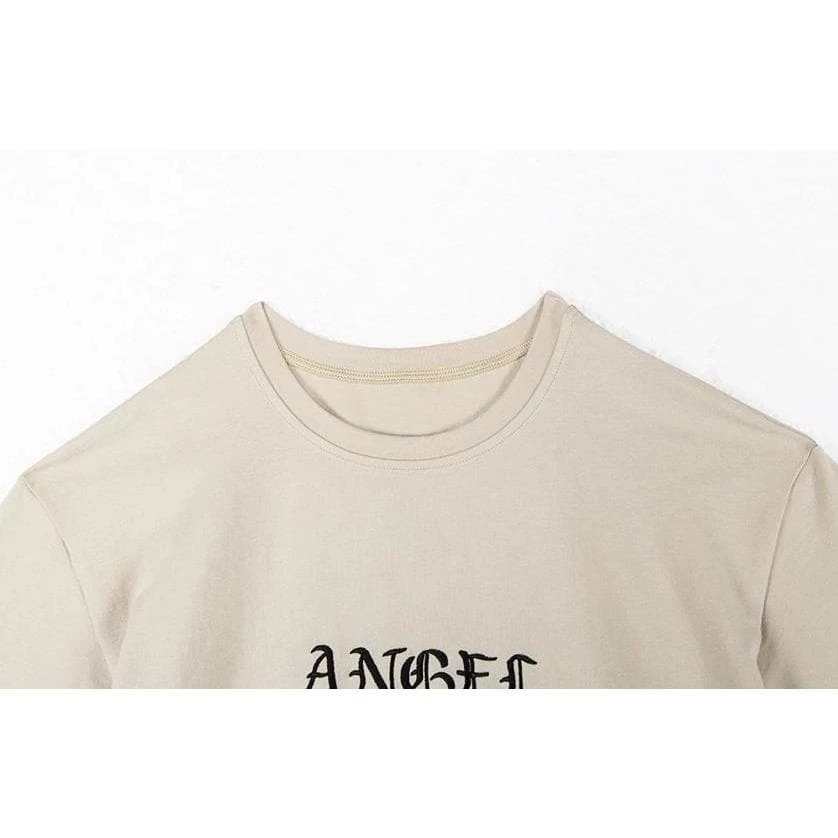 Oversize khaki t-shirt with a gothic font ‘ANGEL’ slogan embroidery.