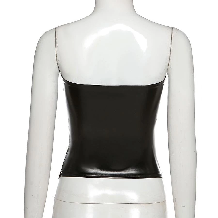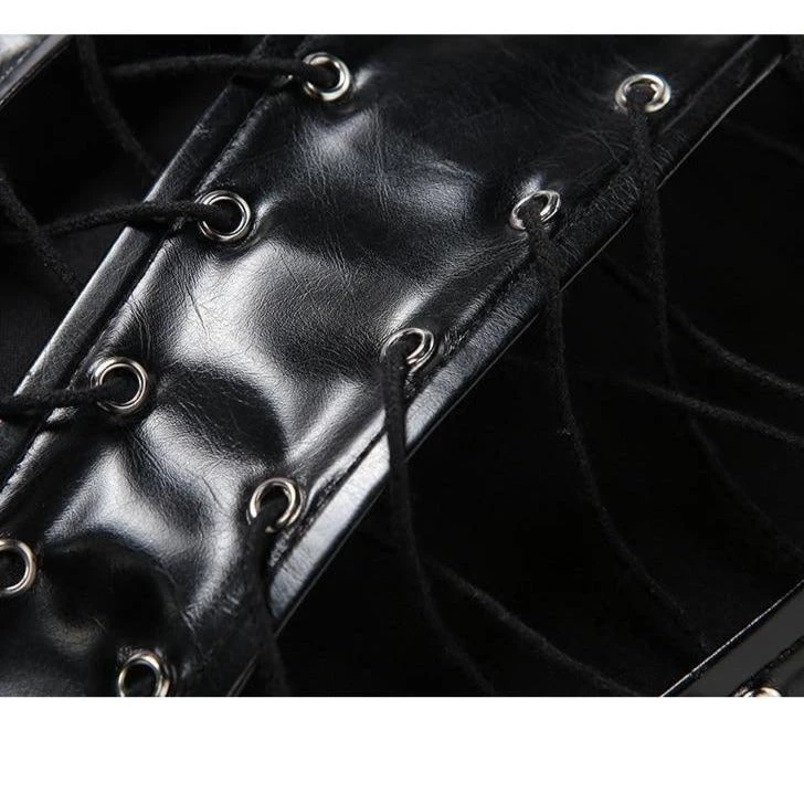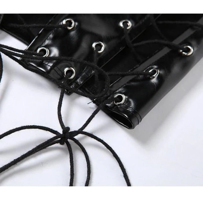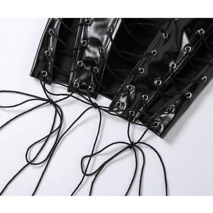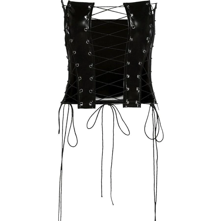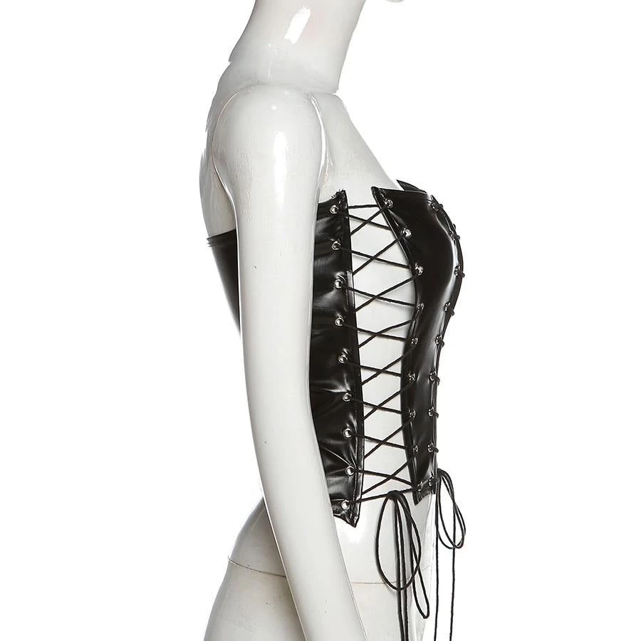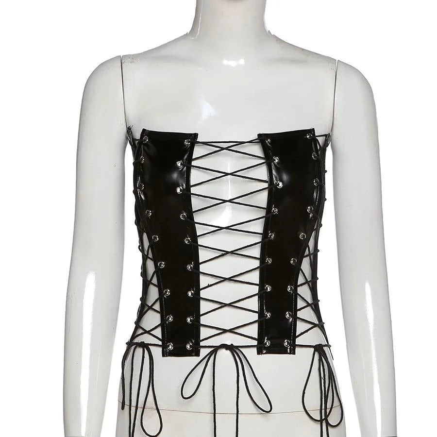 Black lace up corset-style crop top.