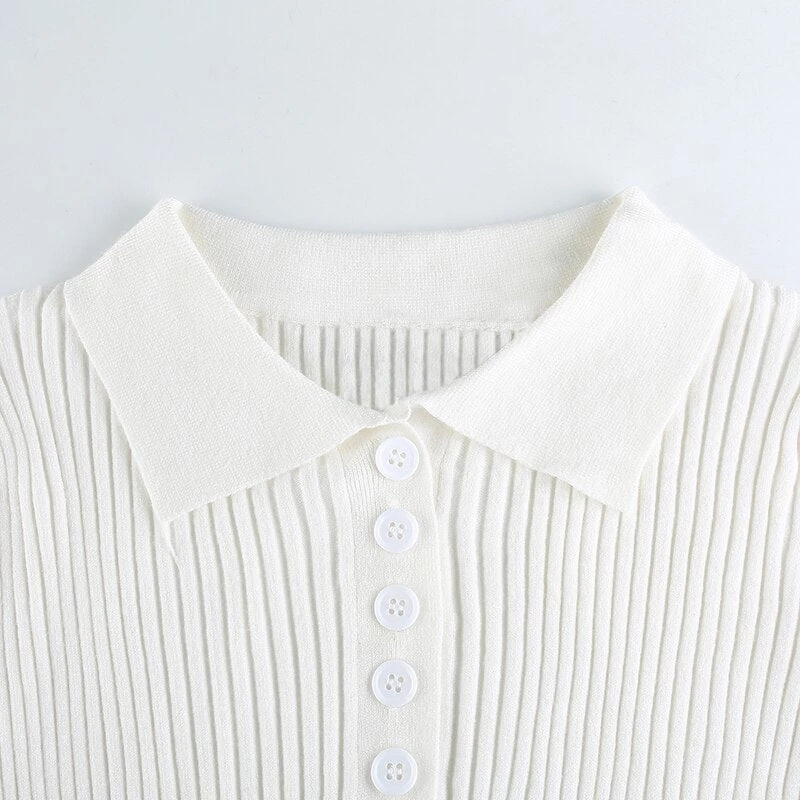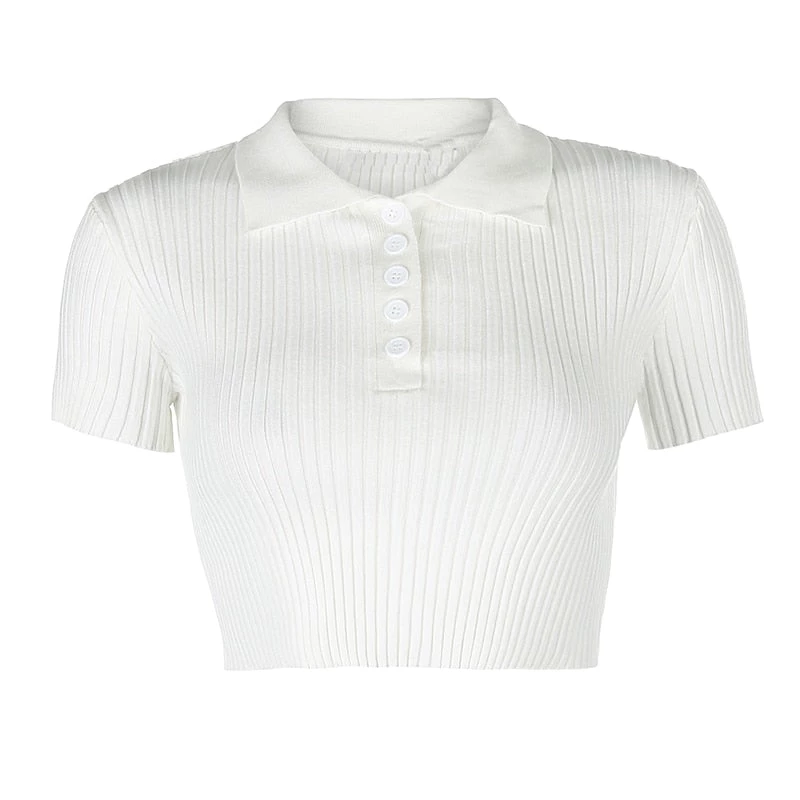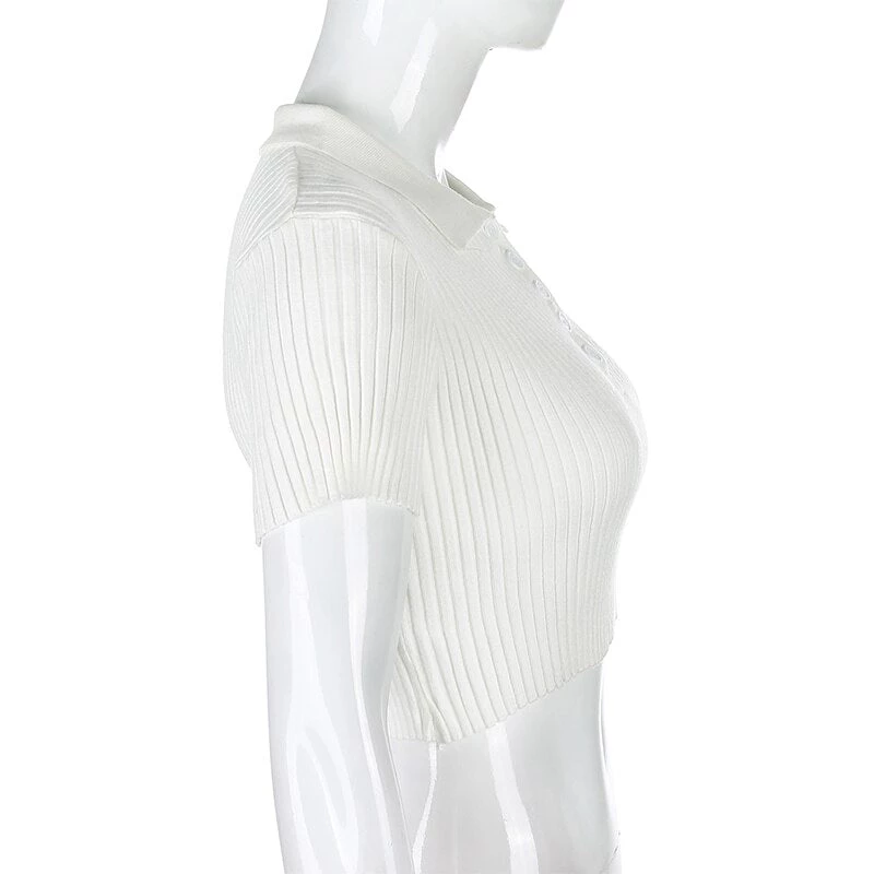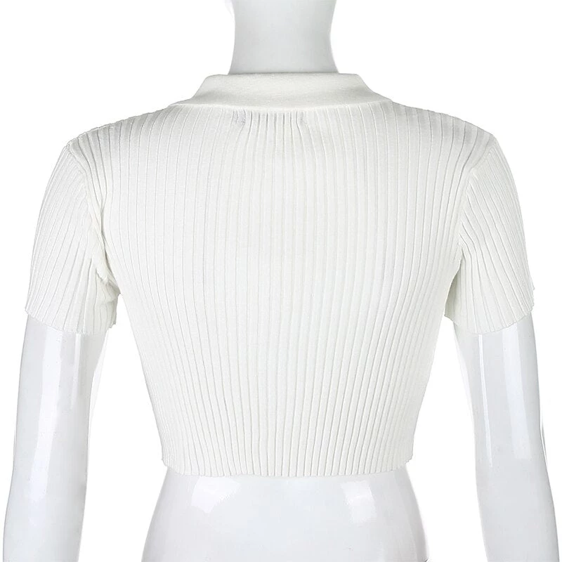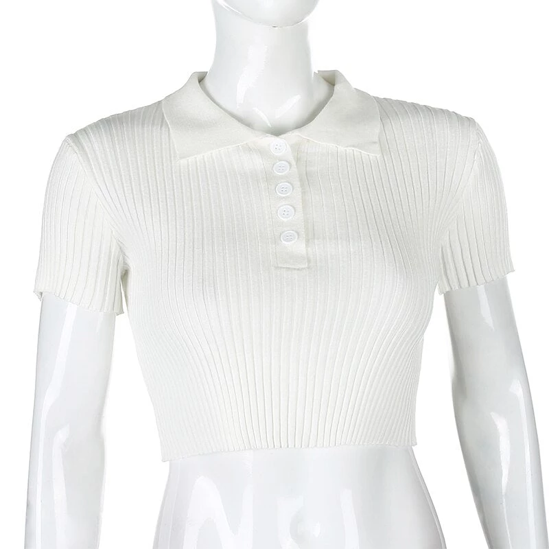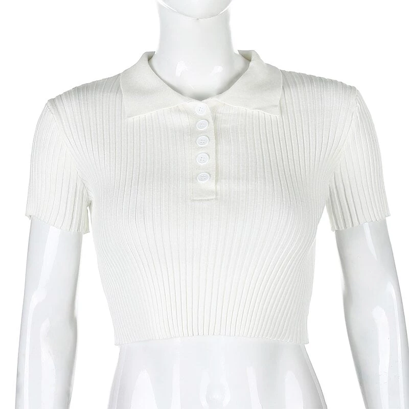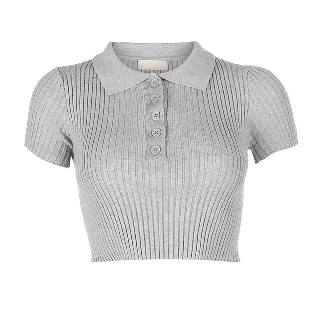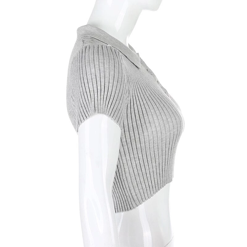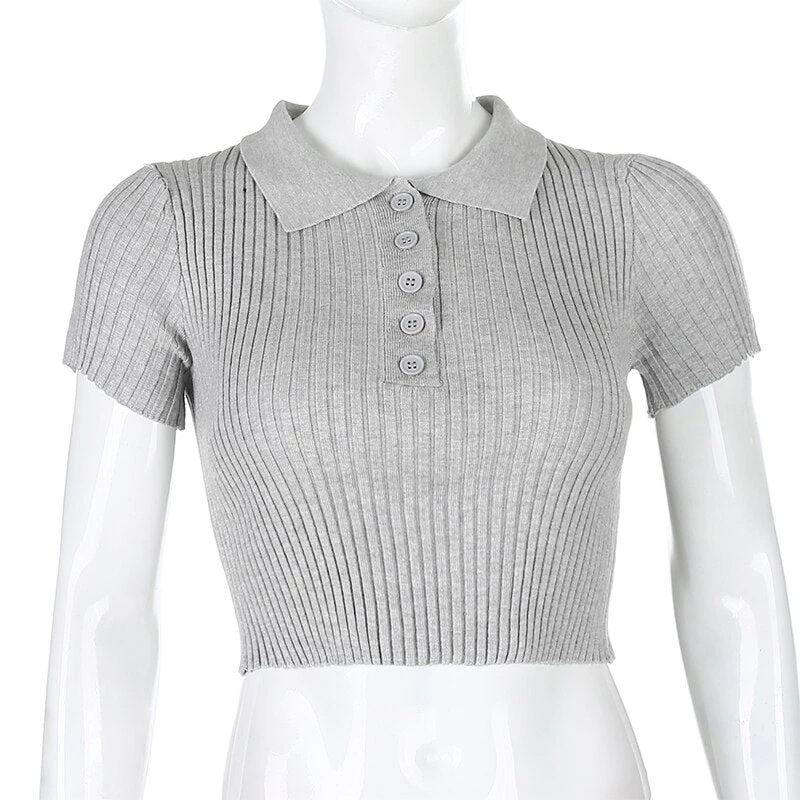 White or grey ribbed button up collared crop top. Small fitting.