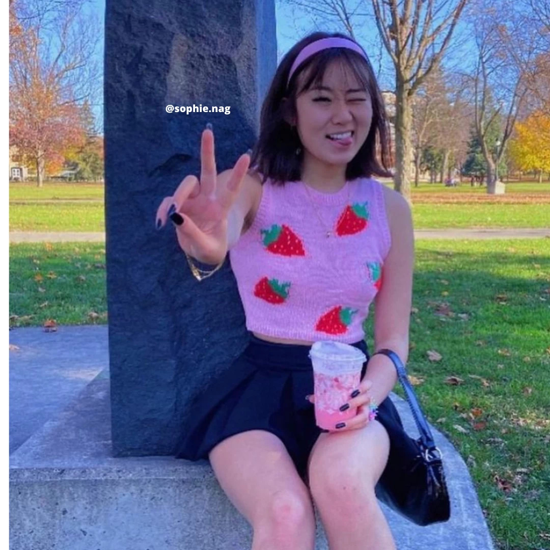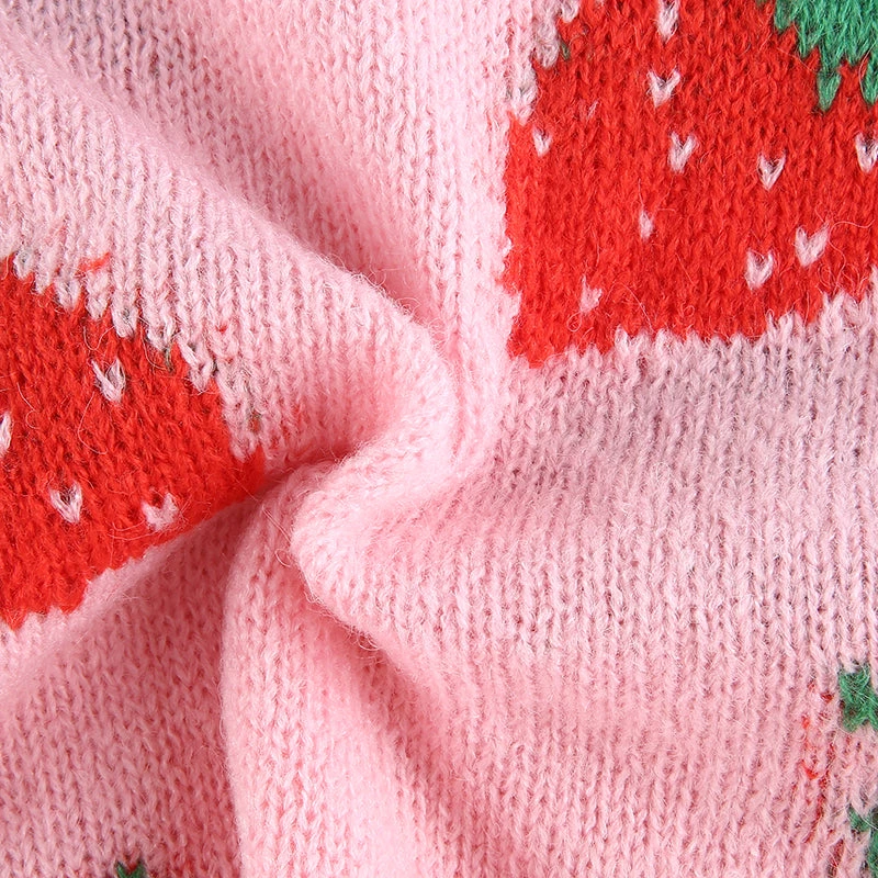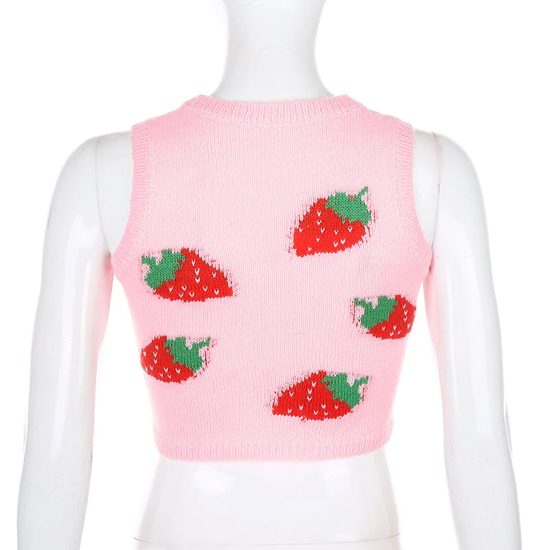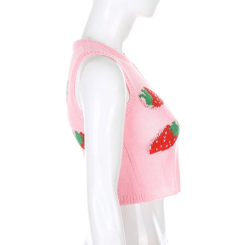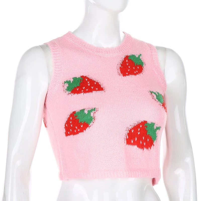 Pink strawberry print knitted tank top.