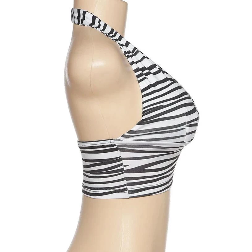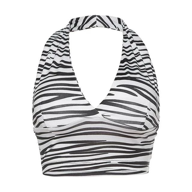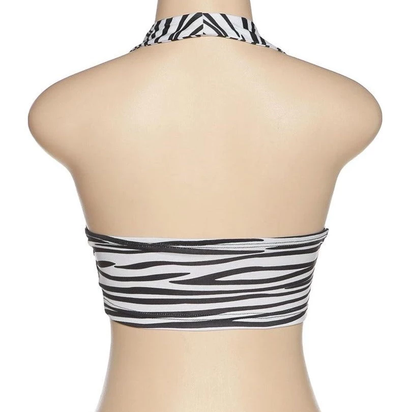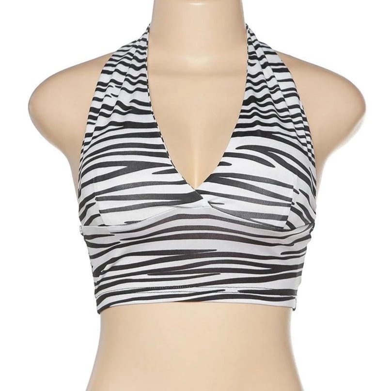 Black and white zebra print halter crop top.