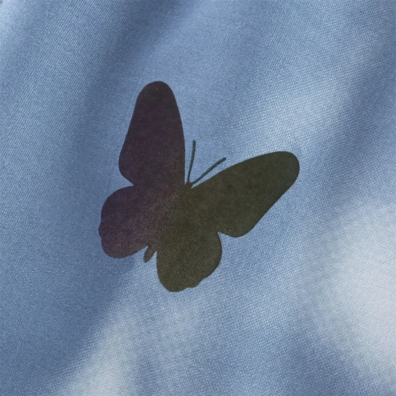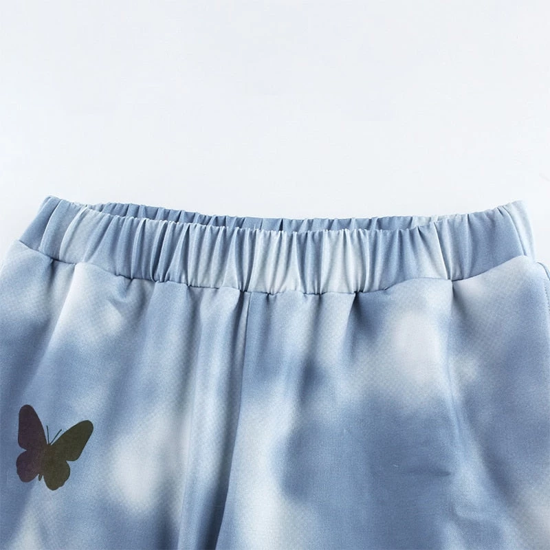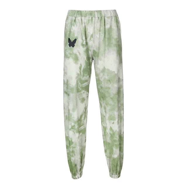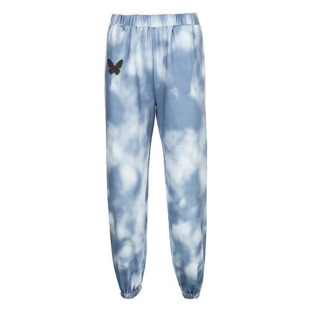 Blue or green tie dye jogger sweatpants with a top side butterfly design.