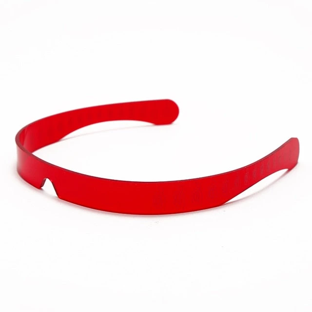 Futuristic thin bright headlight-style wrap shades.