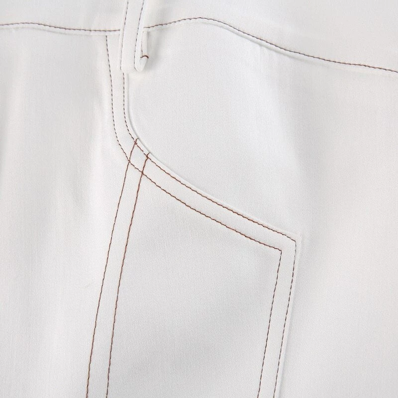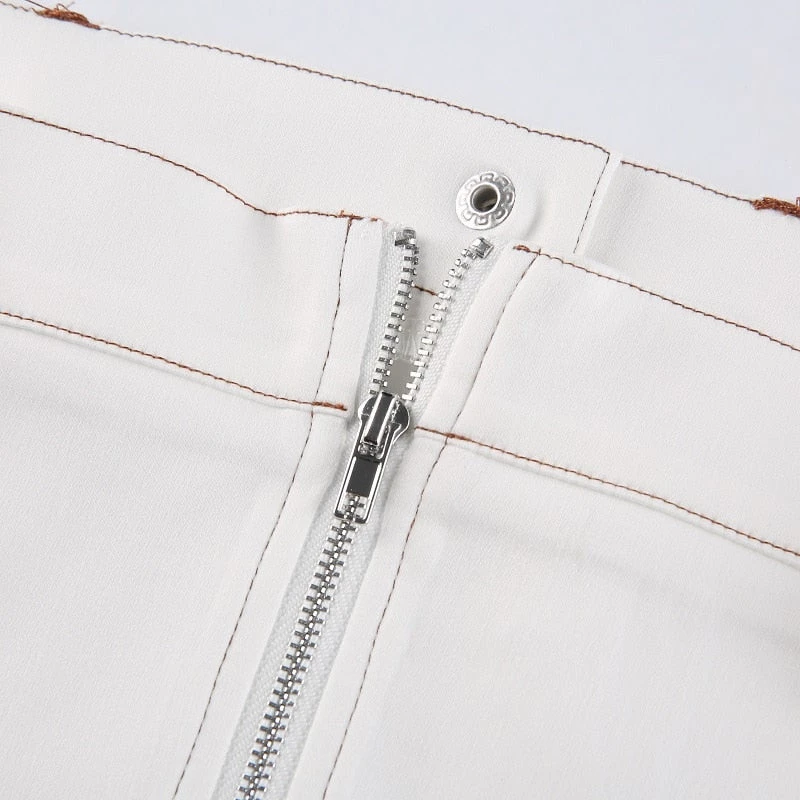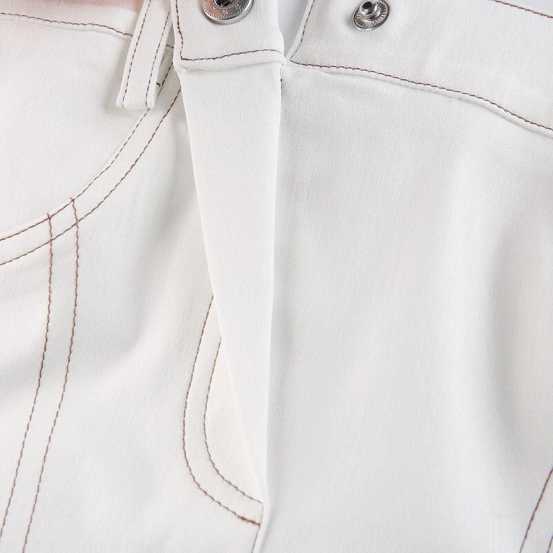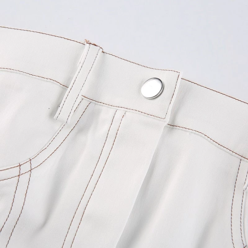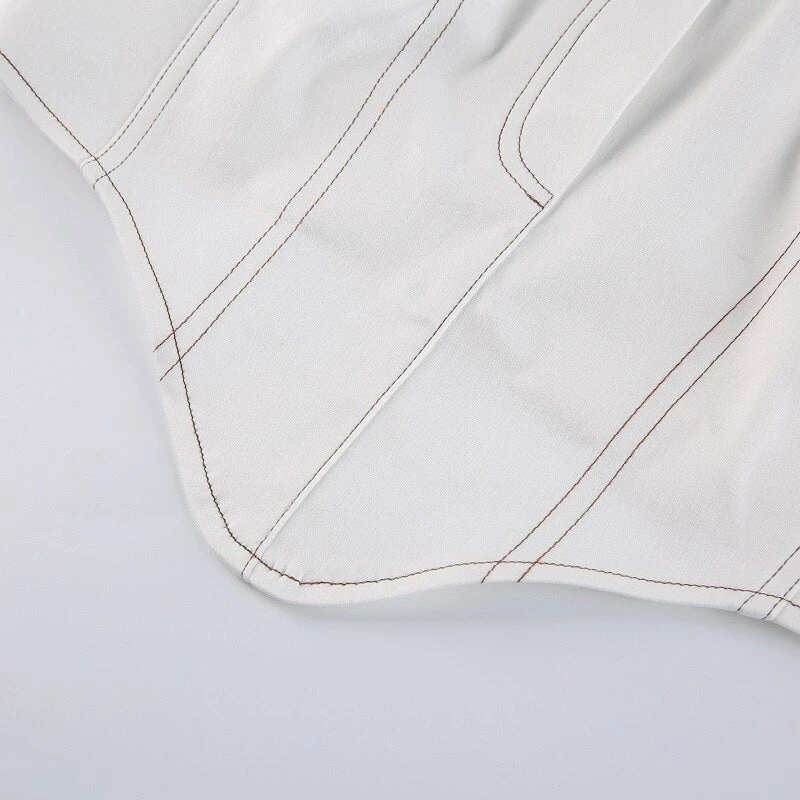 White jean-style bandeau pointed crop top.