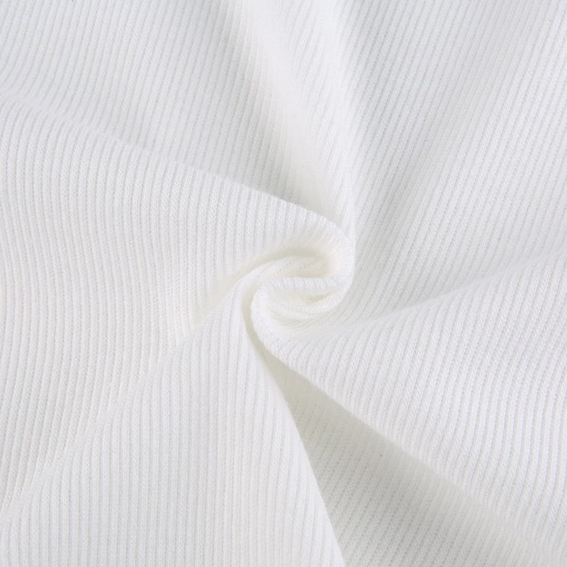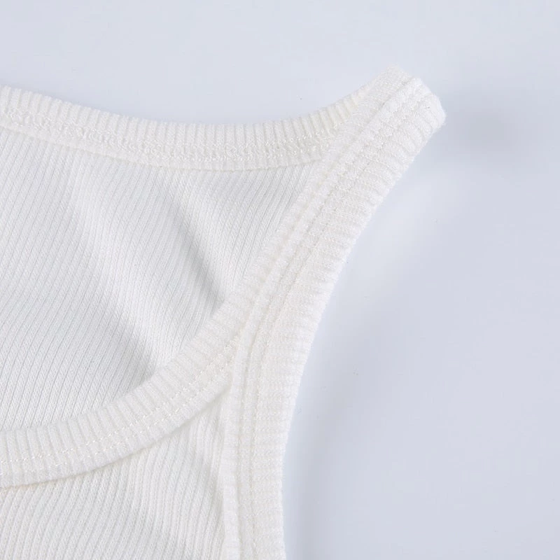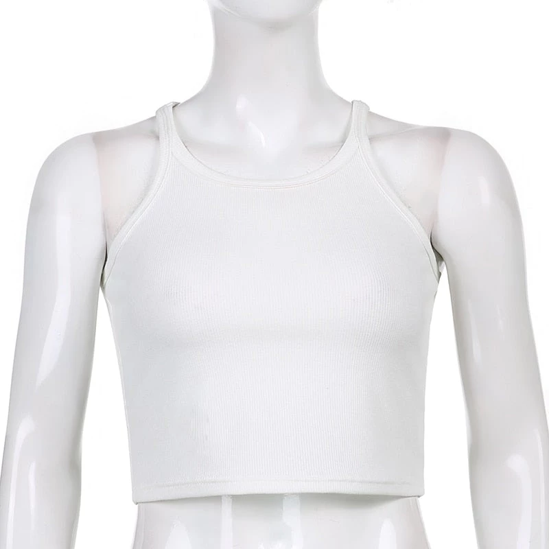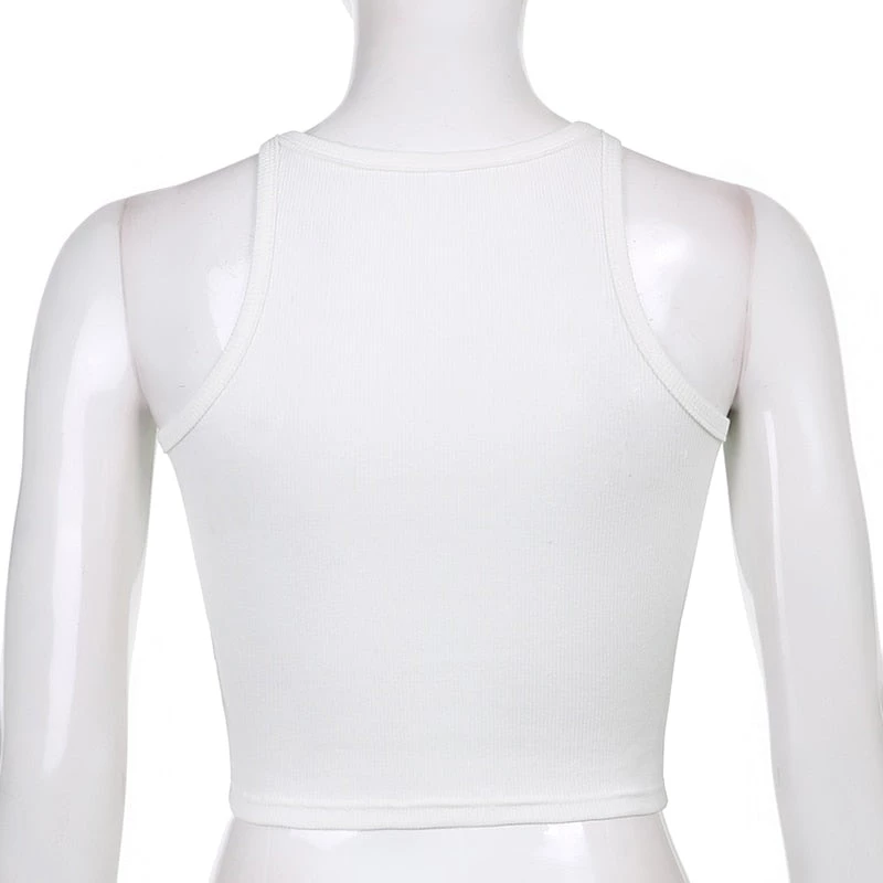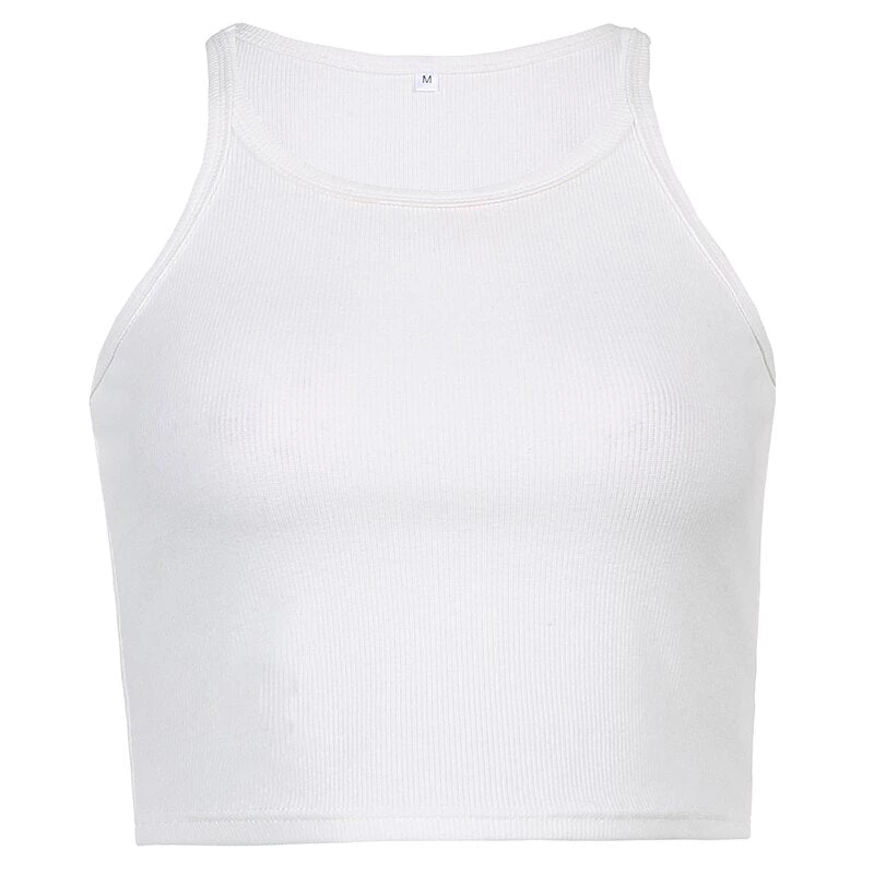 White ribbed high neck tank crop top.